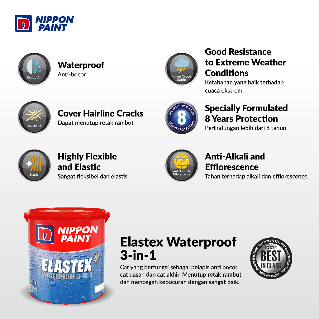 Nippon Paint - Elastex Waterproof 3-In-1(Tinting)-20kg-Cat Pelapis Anti-Bocor