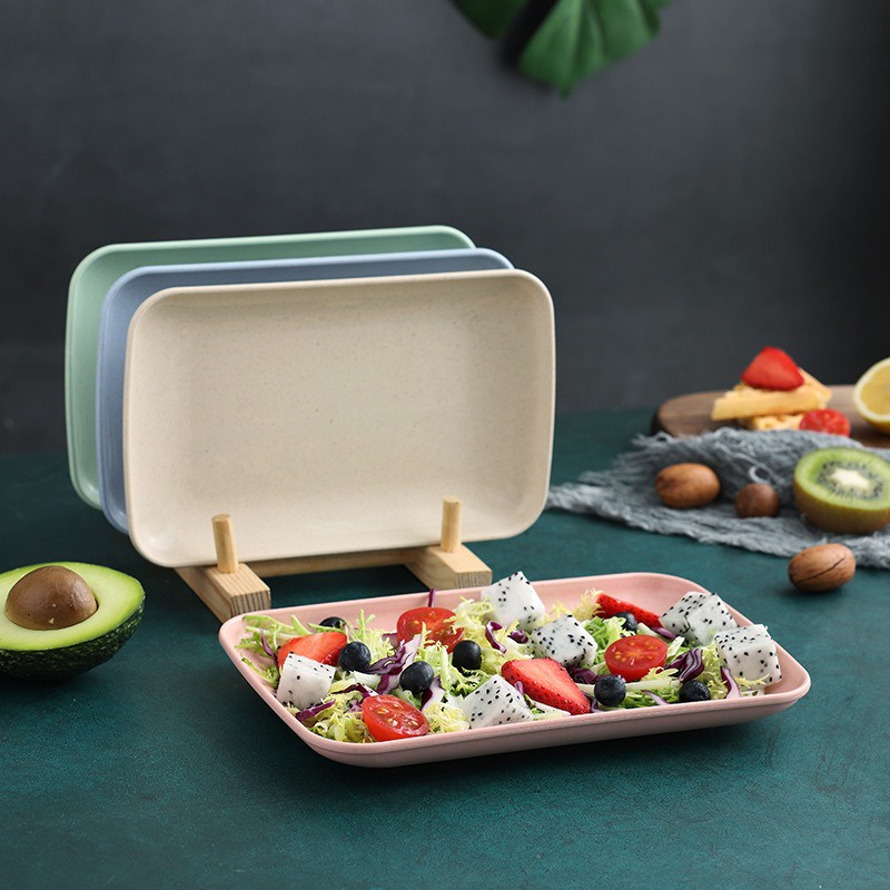 S170 Piring Saji Lauk Segi Panjang Piring Makan Kue Roti Snack BPA Free Bahan Jerami Plastik