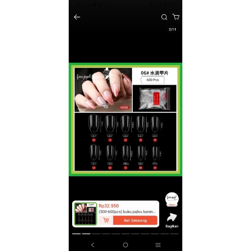 14 pcs kuku palsu polos bening/ready banyak bentuk