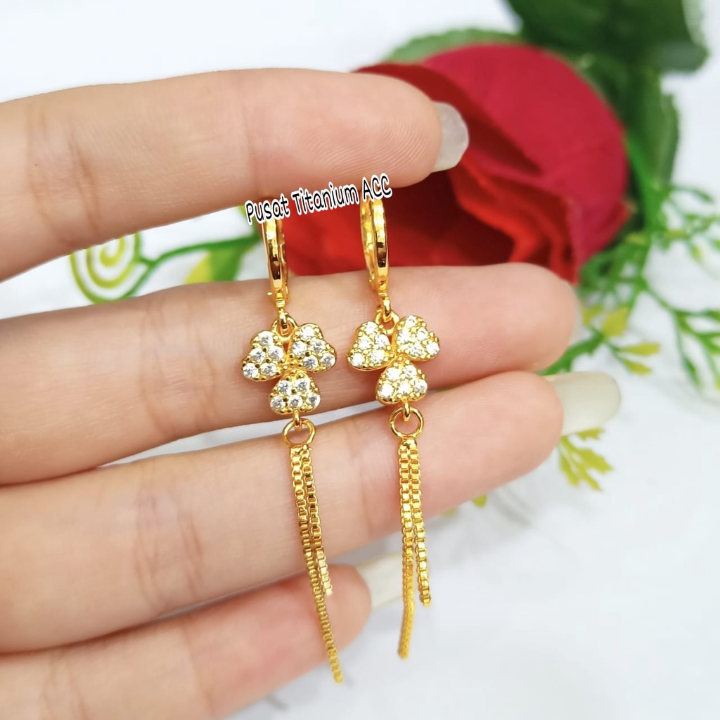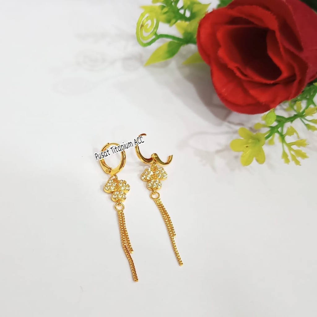 ANTING TITANIUM JURAI PERMATA BUNGA SAKURA POGAM EMAS ANTI KARAT & ANTI LUNTUR