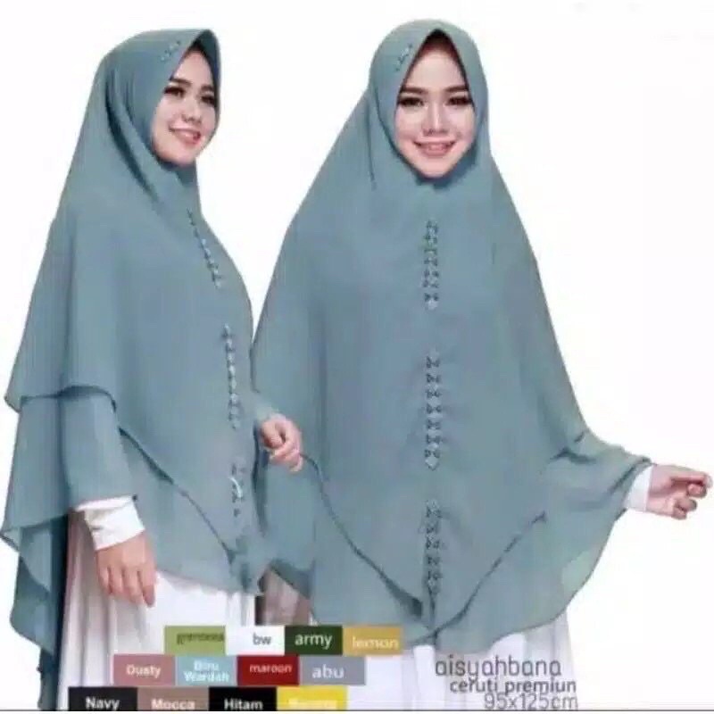 Khimar Syari Ceruty 2 Layer Aisyahbana Swarovski Jumbo - Jilbab Jumbo Payet Swarowsky Cantik