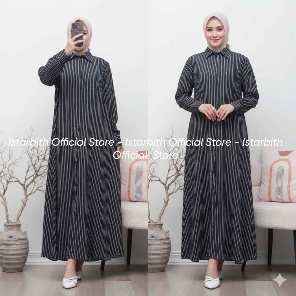 Istarbith Sabila Dress Gamis - Gamis Rayon Salur Adem Busui Friendly - Dress Gamis Daily Lengan Kancing