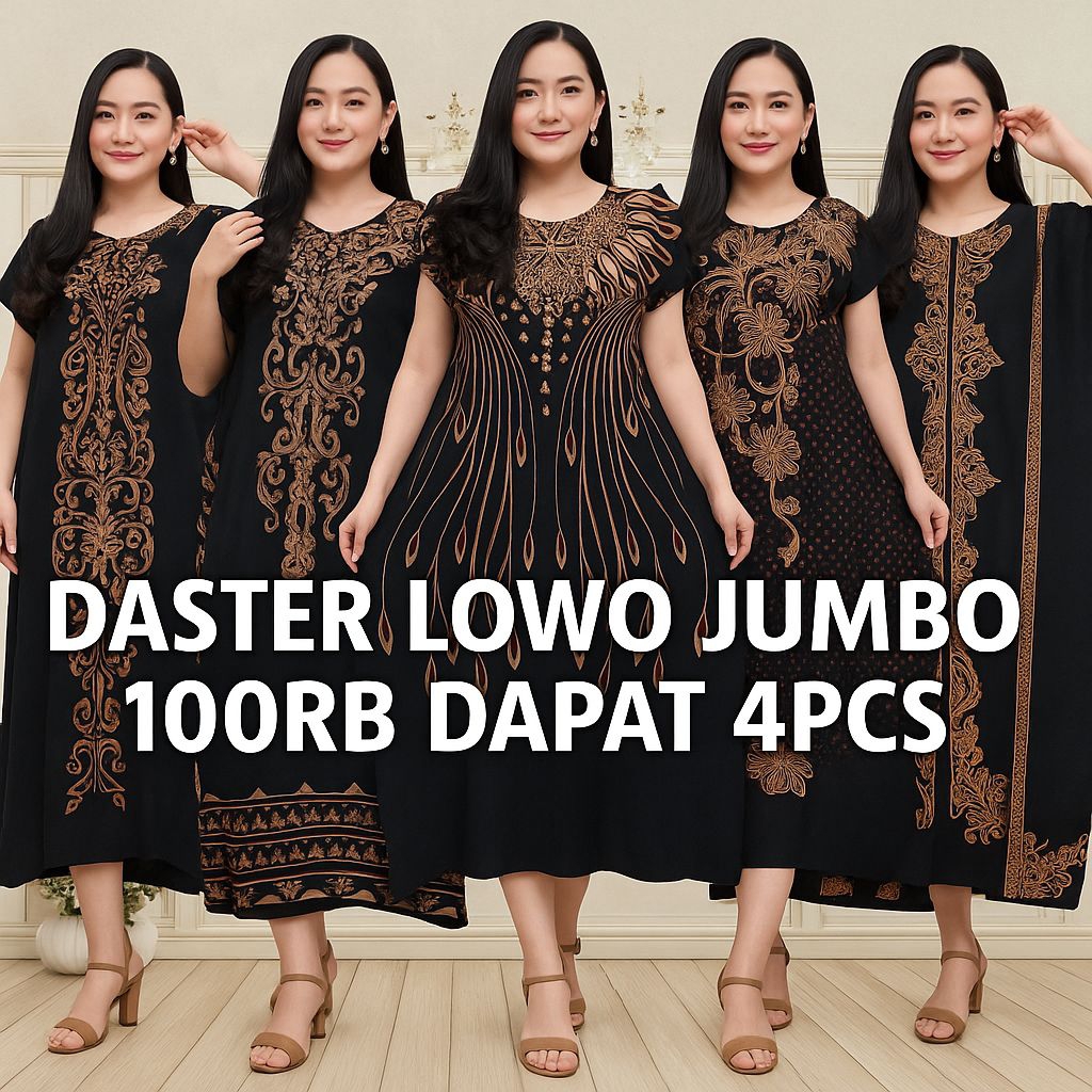 Paket Hemat 4Pcs 100 Rb Daster Lowo Jumbo Kekinian ,Bahan Rayon Premium Adem LD.130