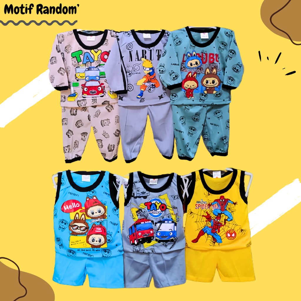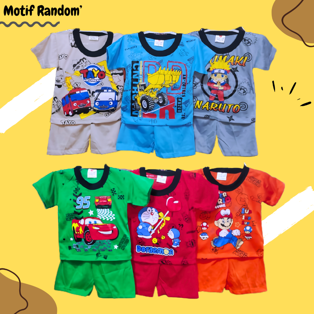PAKET BUNDLE 6 BAJU SETELAN ANAK HARIAN BAJU HARIAN ANAK BAJU ANAK LAKI LAKI MOTIF RANDOM