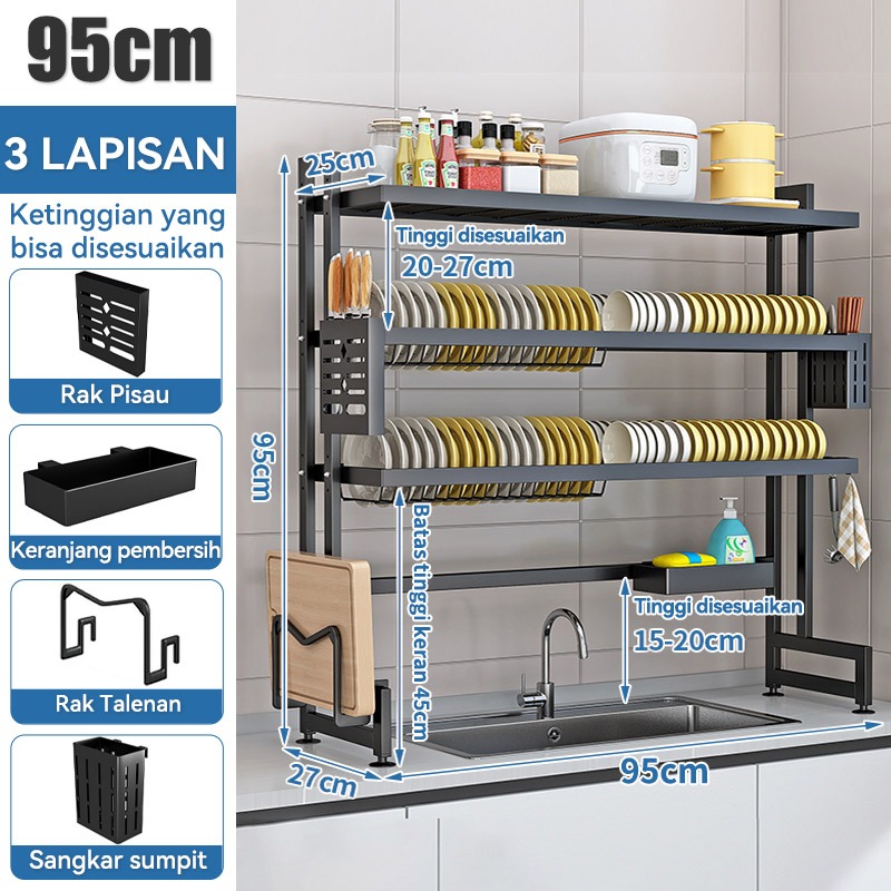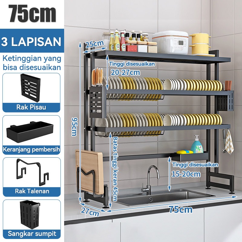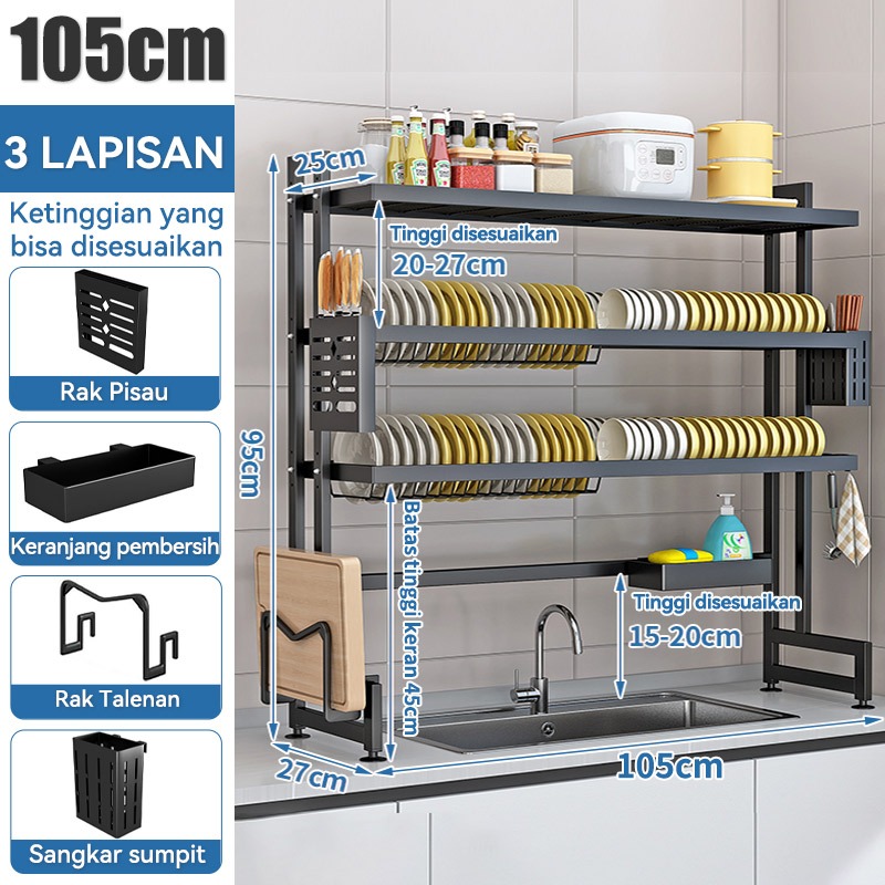 Rak Piring Wastafel Dengan Kabinet Rak Wastafel Cuci Piring Rak Piring Stainless Steel Rak Dapur Multifungsi Dengan Aksesoris