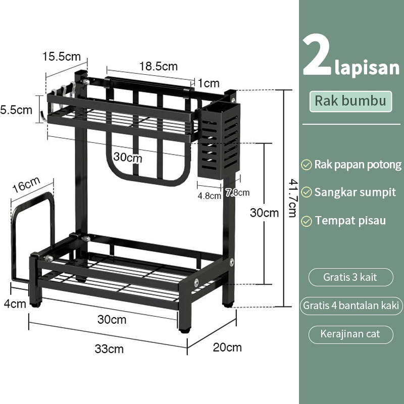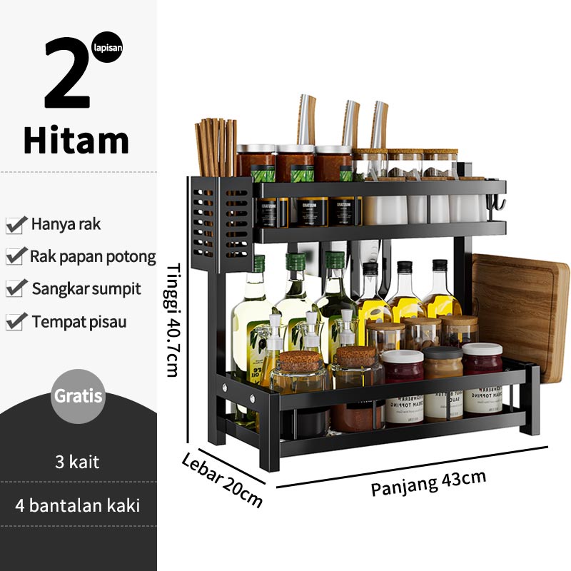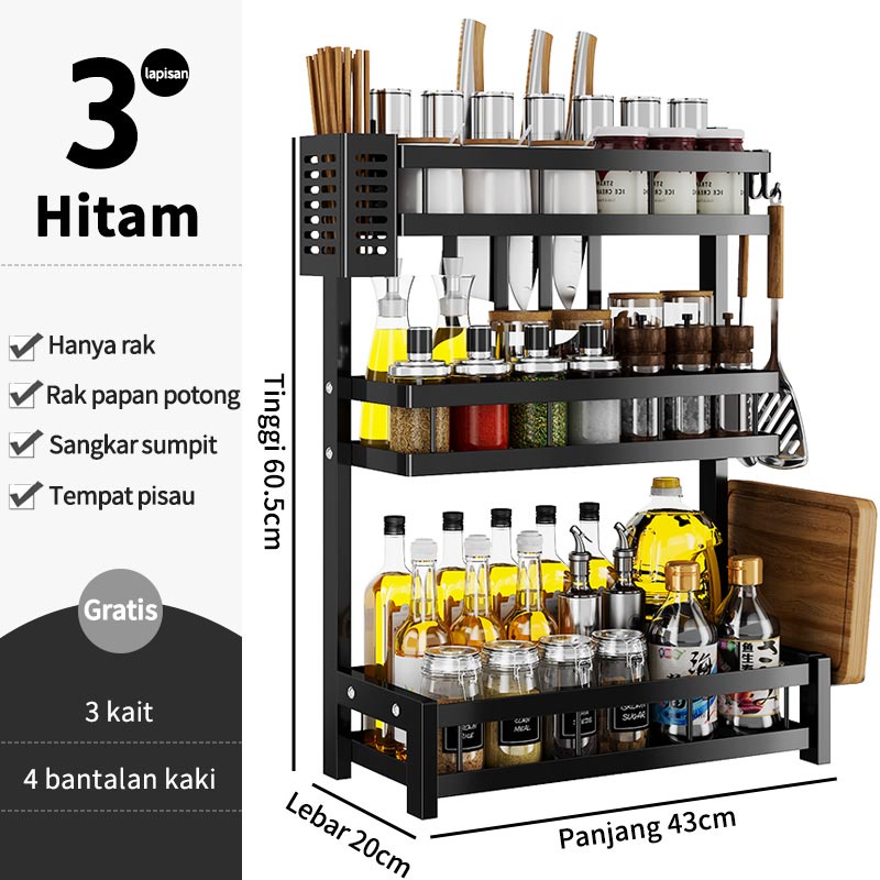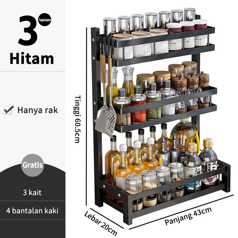 Rak Bumbu Serbaguna Dapur Tempat Bumbu Rak Penyimpanan Dapur Stainless Steel