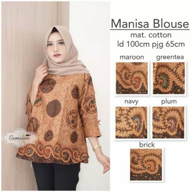 MANISA BLOUSE ATASAN BATIK KERJA WANITA SERAGAM KANTOR GURU BLOUSE KEKINIAN MURAH ADEM