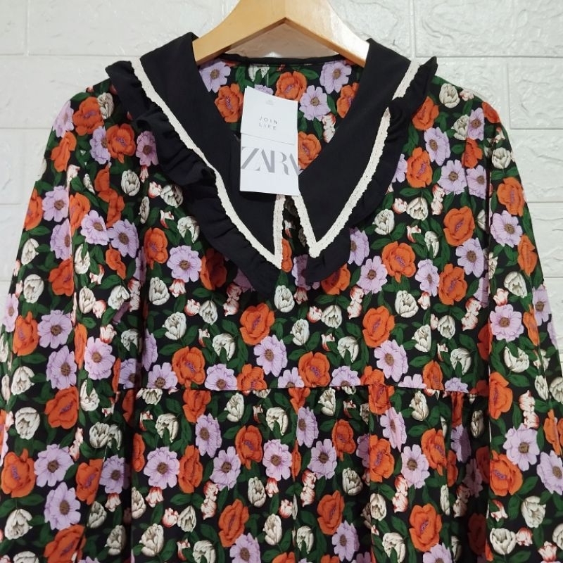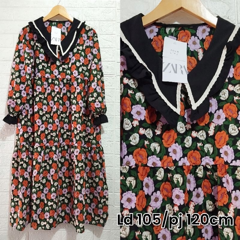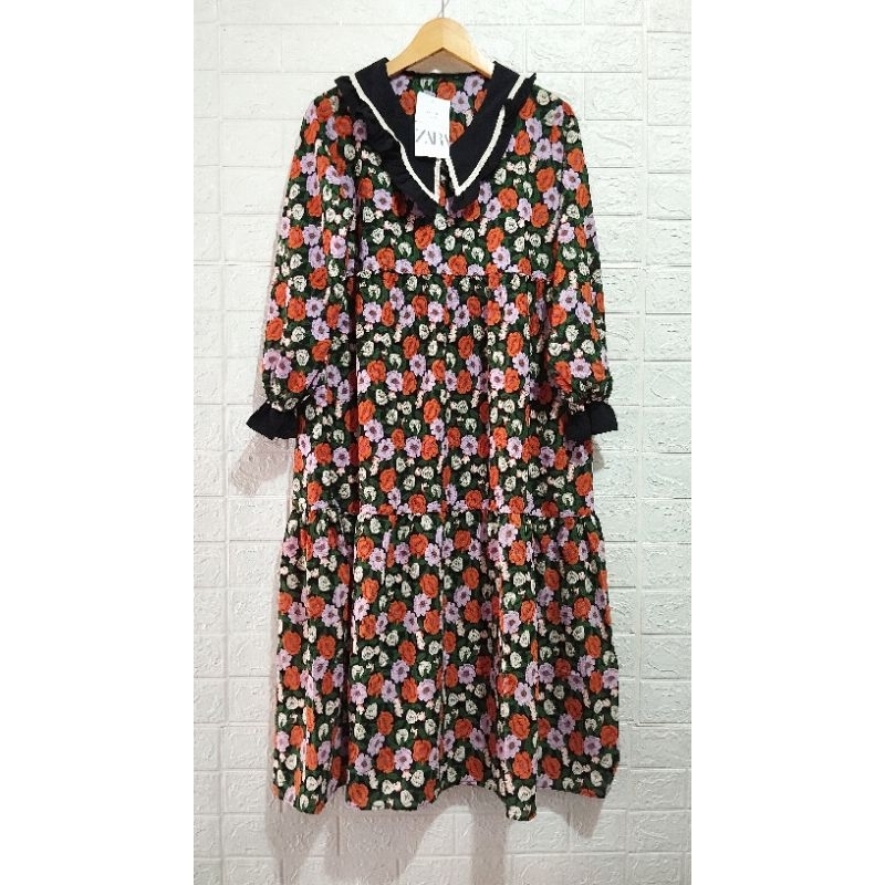 MIDI DRESS ZARA MOTIF BUNGA BUNGA PREMIUM