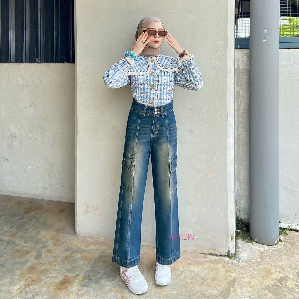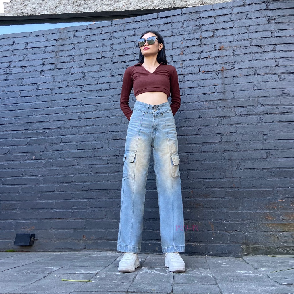 WAUW - Celana Highwaist Basic Cargo Jeans SUGA