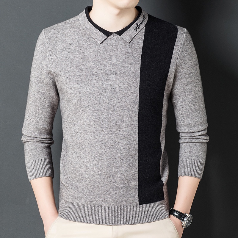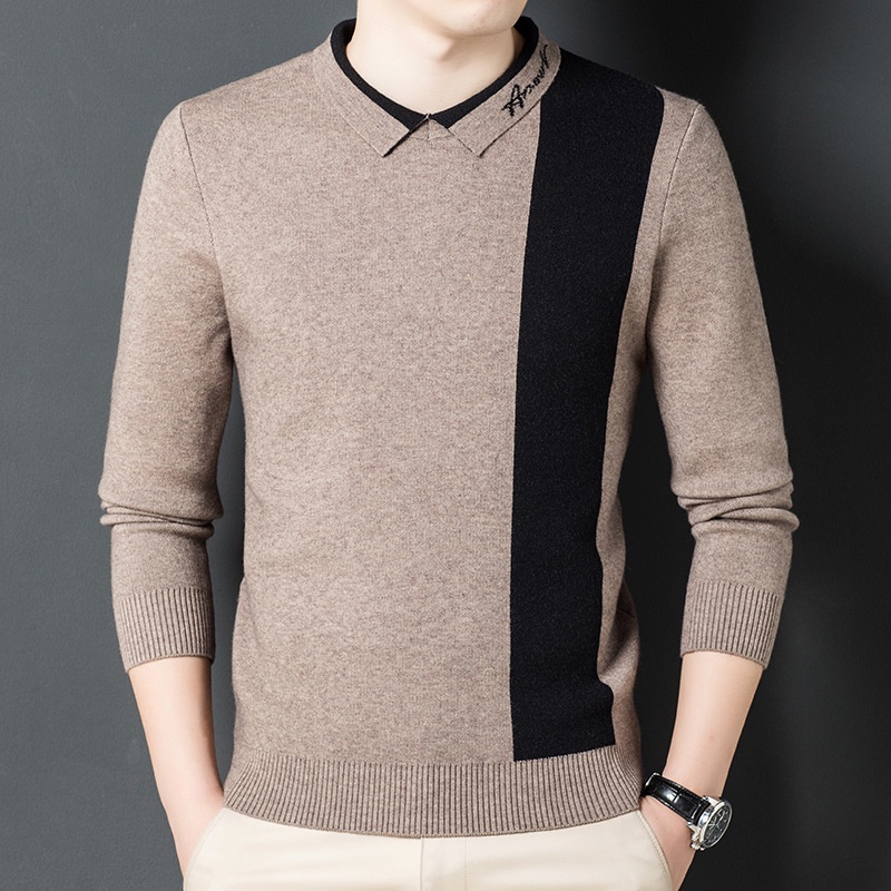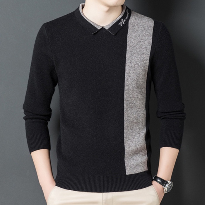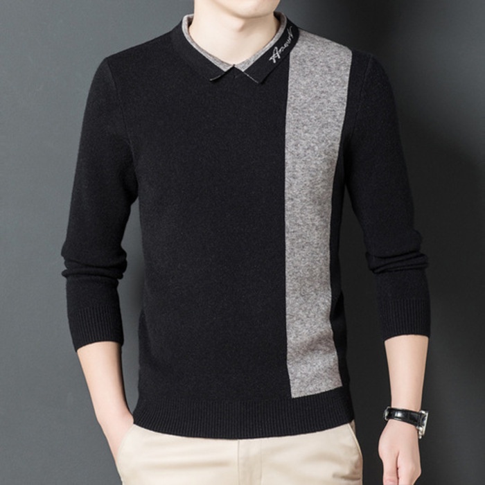 sweater pria hitam Musim gugur dan musim dingin Sweaters Kolar Polo Warna Pria cocok dengan versi Korea