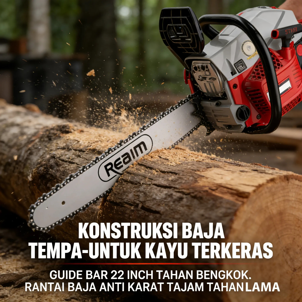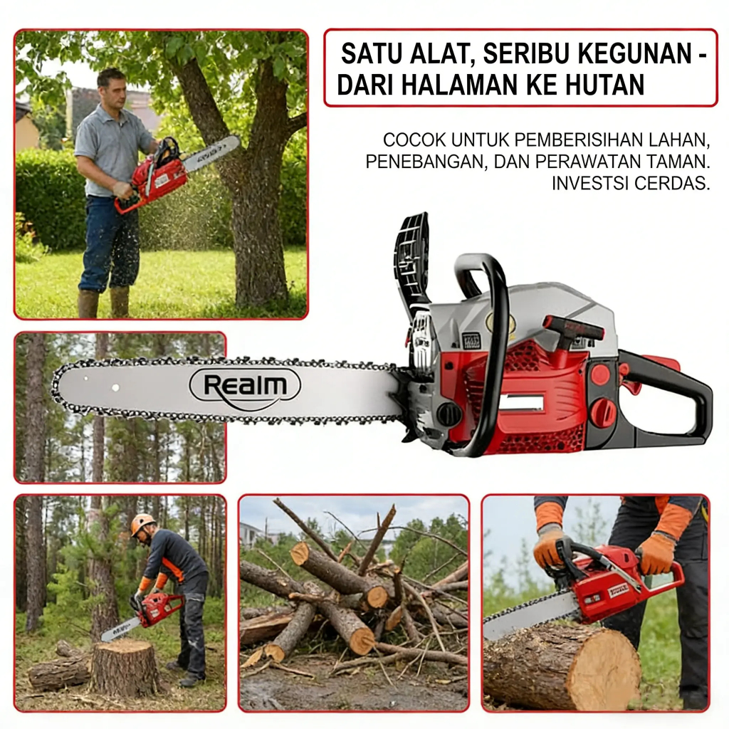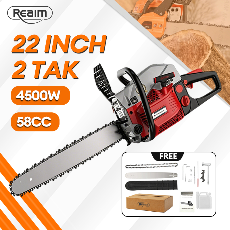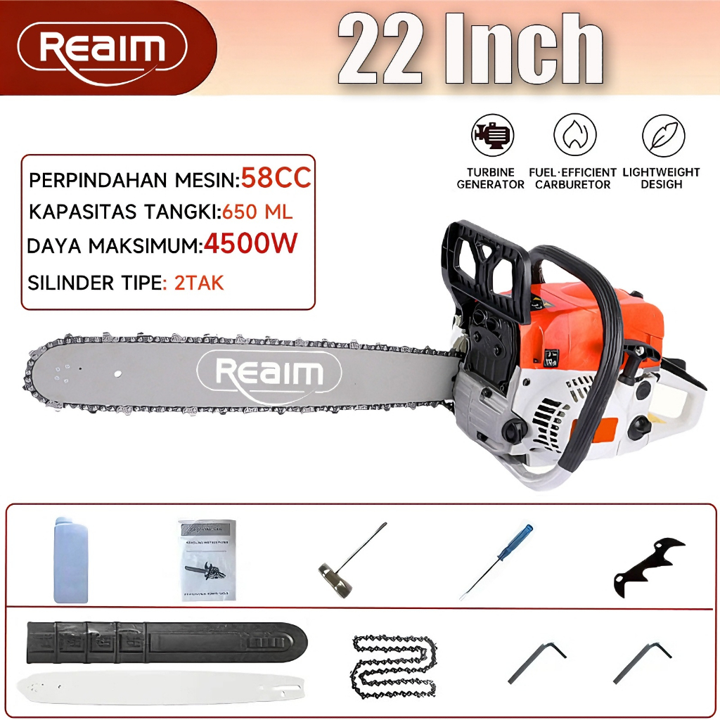 REAIM Mesin Potong Kayu 58CC 22 Senso Chainsaw 2Tak Untuk /Gergaji Mesin/Mesin Gergaji Kayu/Gergaji Potong Pohon Kayu