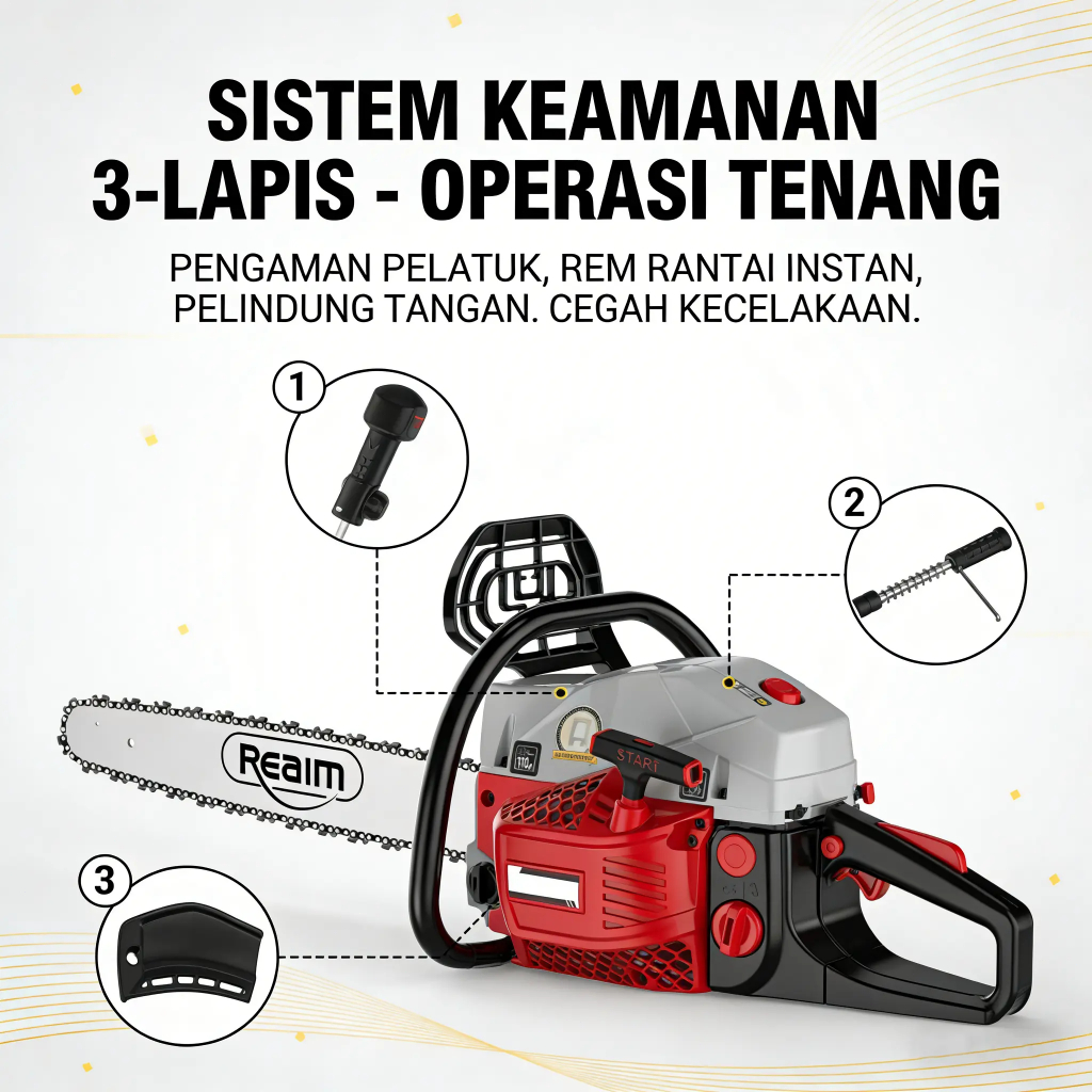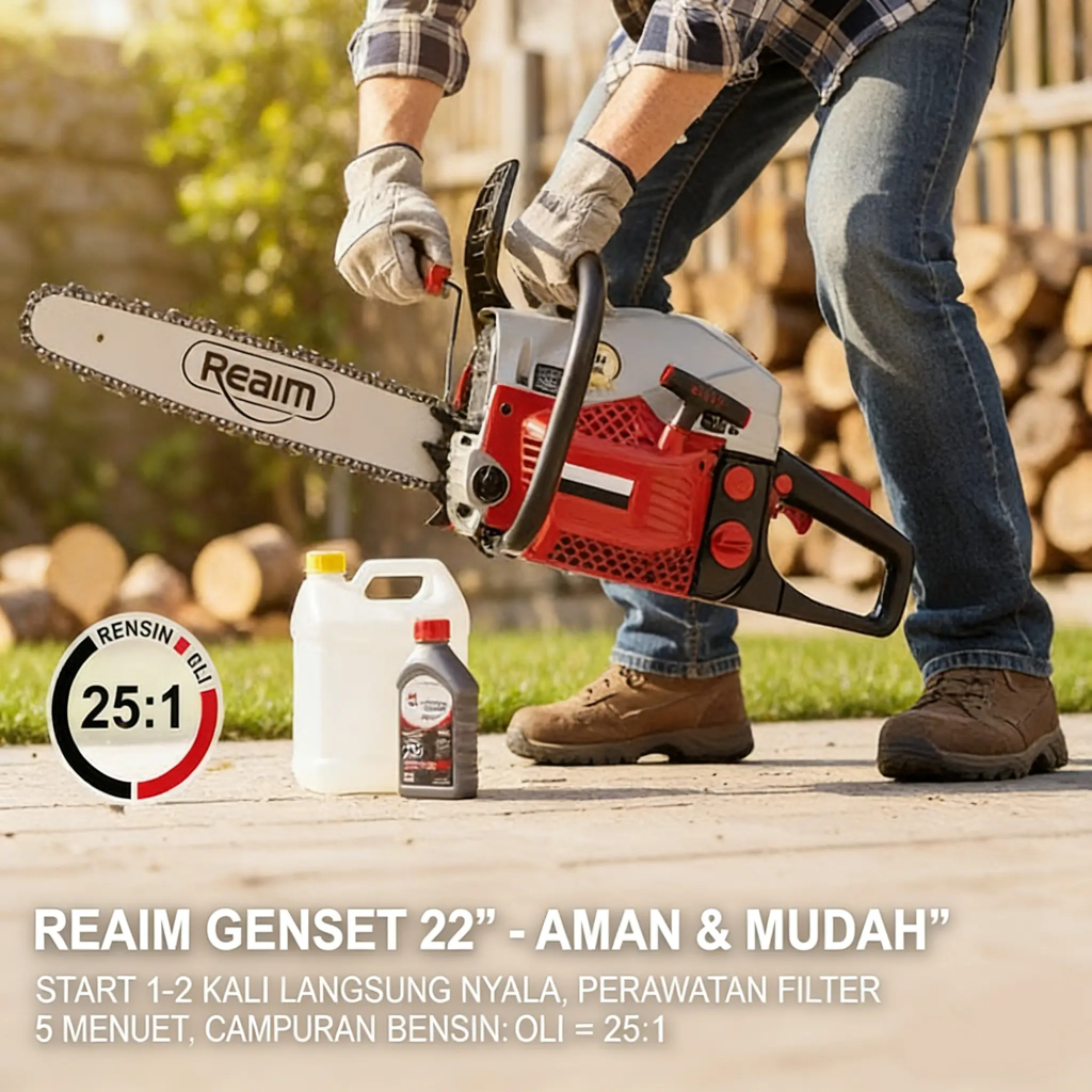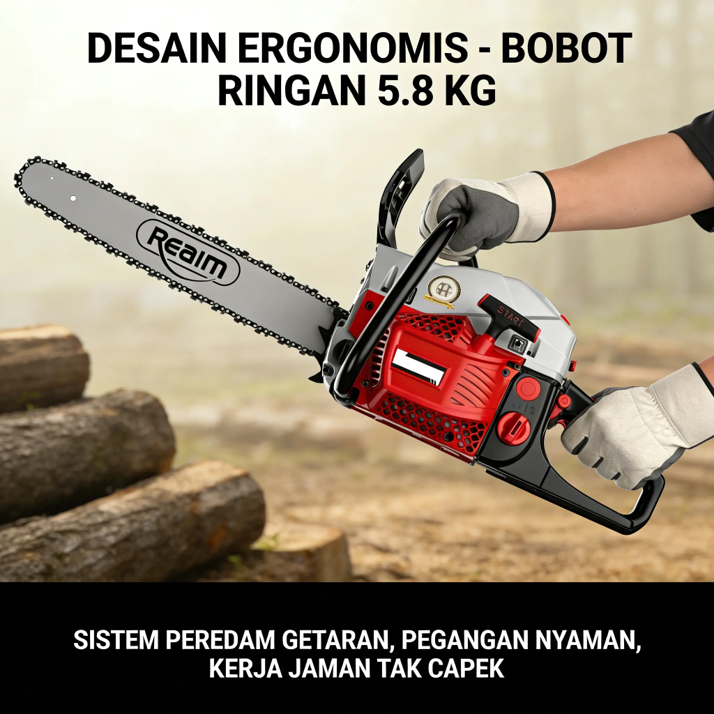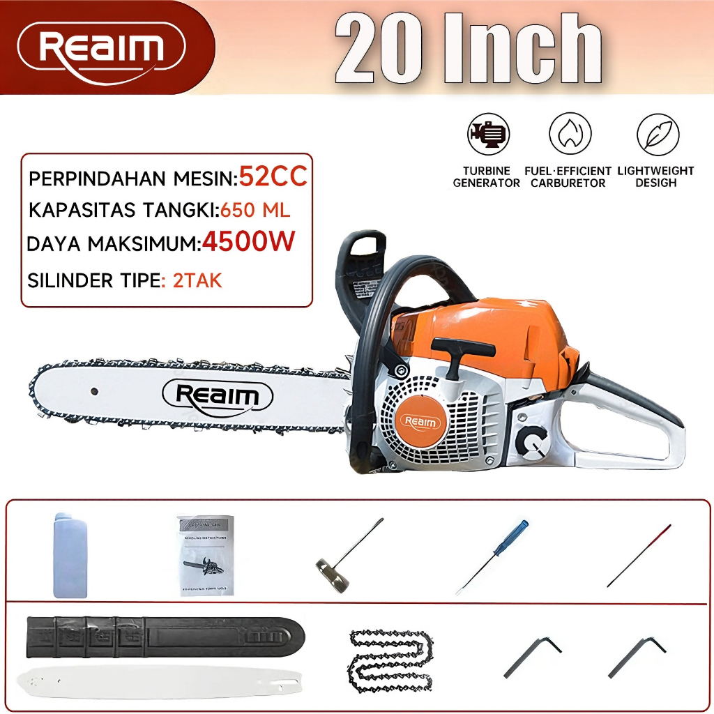 REAIM Mesin Potong Kayu 58CC 22 Senso Chainsaw 2Tak Untuk /Gergaji Mesin/Mesin Gergaji Kayu/Gergaji Potong Pohon Kayu