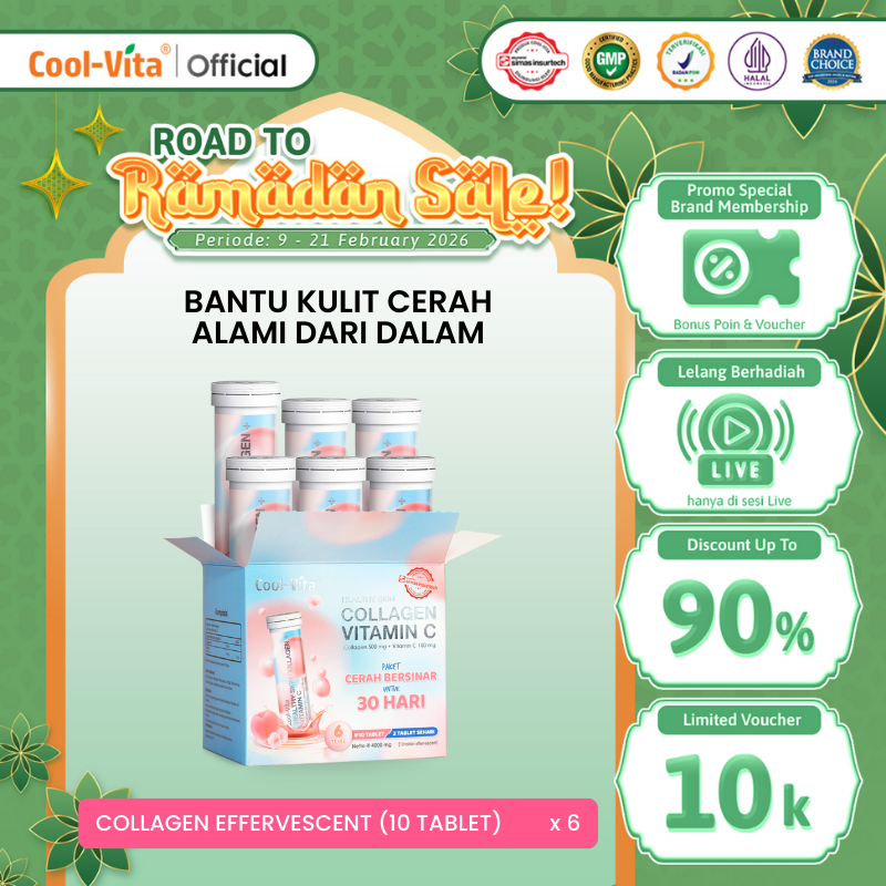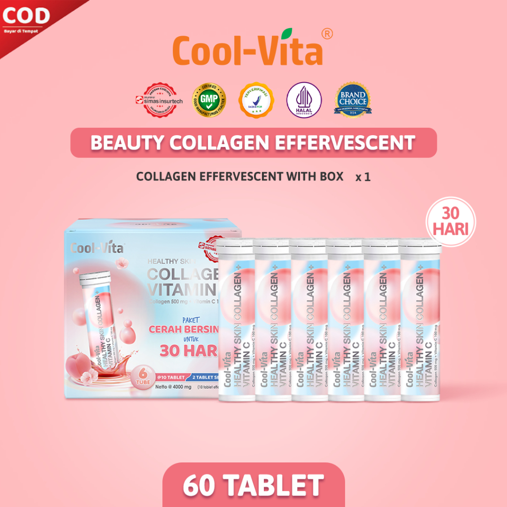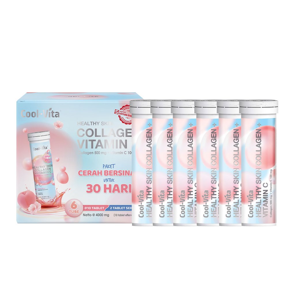 Coolvita Paket Glowing 30 Hari (6 Tube - 60 Tablet) Collagen Effervescent - Suplemen Kolagen + Vit C | Membantu Mencerahkan Kulit Mengurangi Tanda Penuaan New Packaging | BPOM & Original