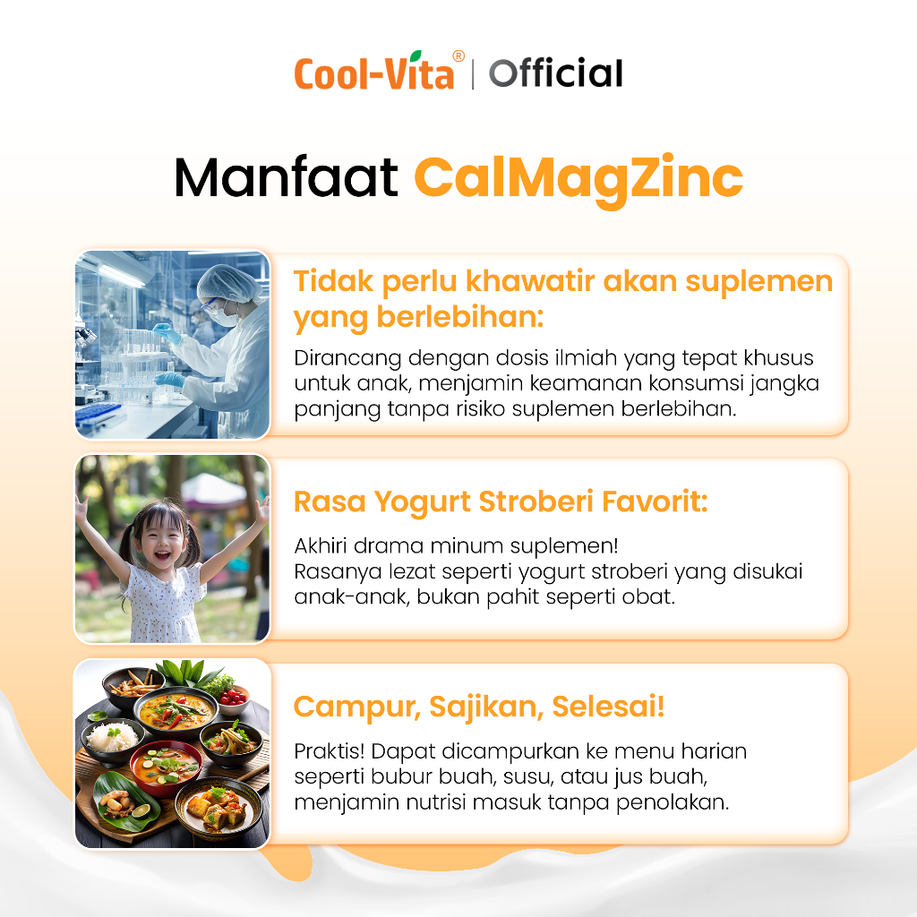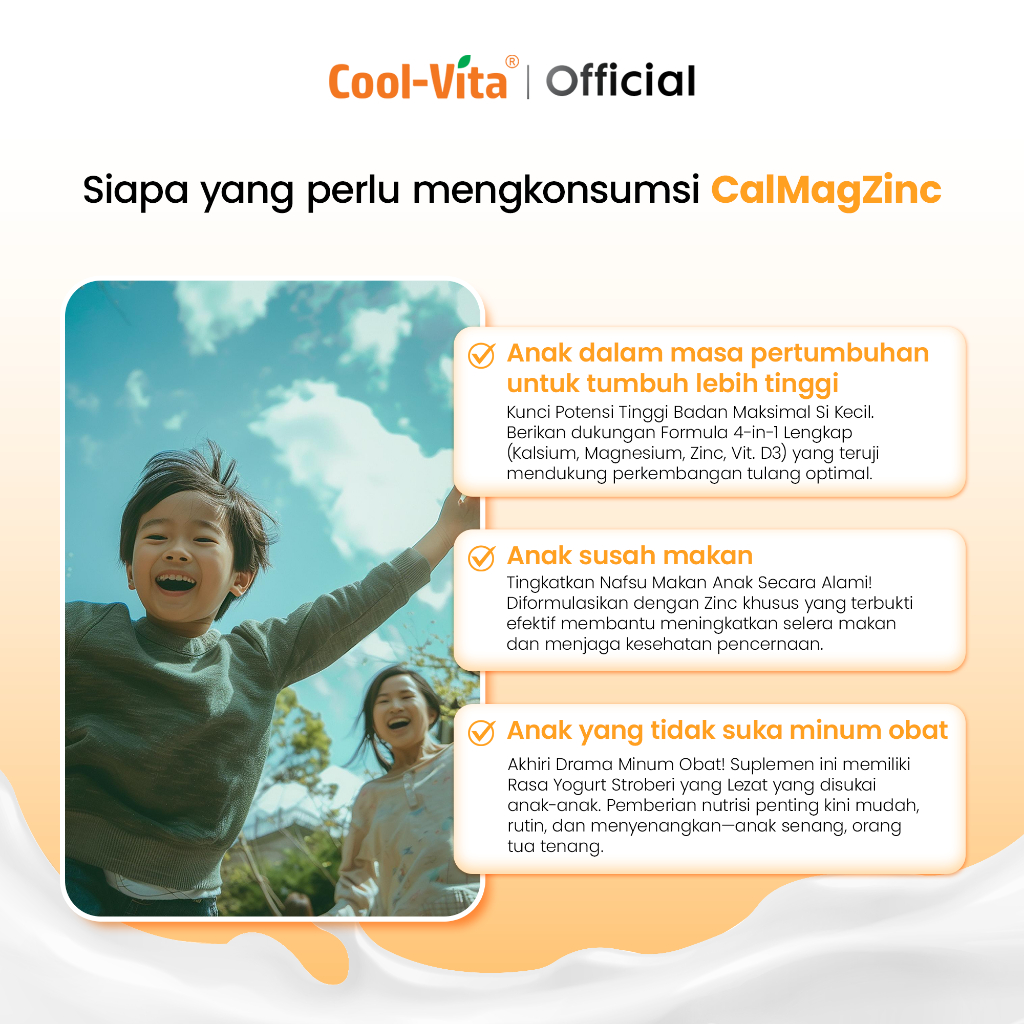 [NEW PRODUCT] Coolvita CalMagZinc Drink 1 Box Rasa Yoghurt Strawberry - Membantu Mendukung Pertumbuhan Tulang dan Gigi | Mengandung Kalsium Magnesium Zinc dan Vitamin D3 | Original dan BPOM