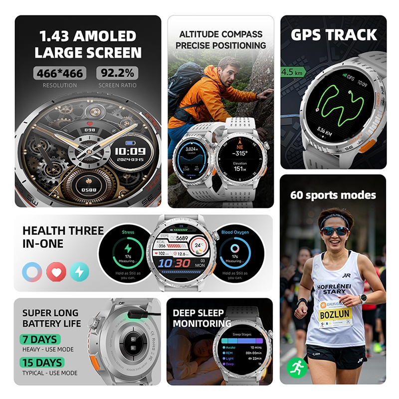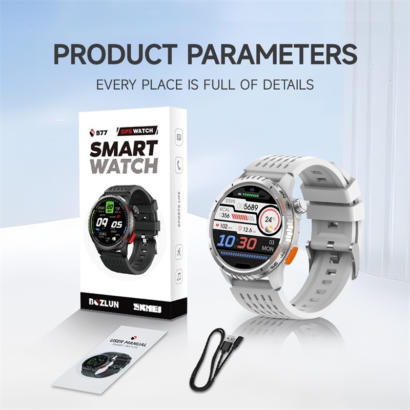 SKMEI X BOZLUN B77 Smartwatch Built-in GPS 1.43AMOLED Screen 100+ Sports Modes 3 ATM Waterproof Bluetooth Phone Call