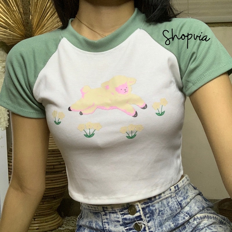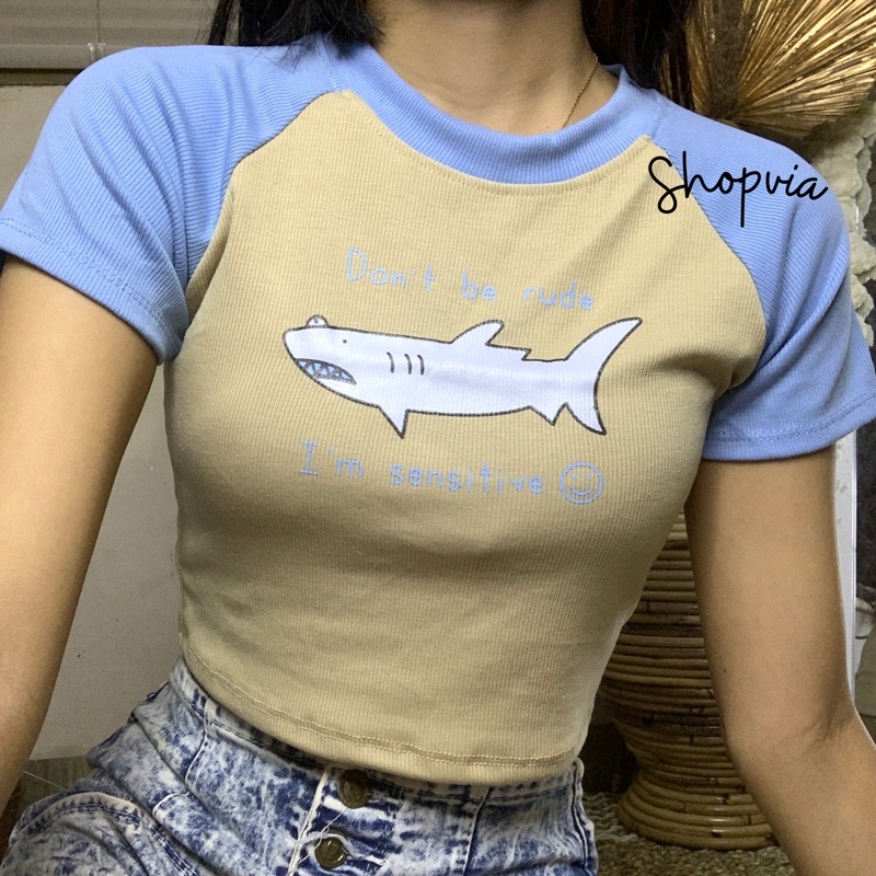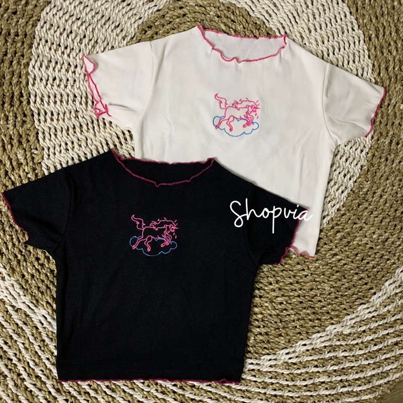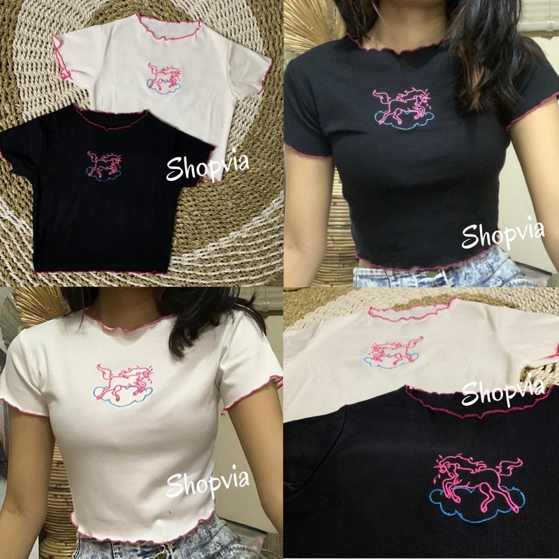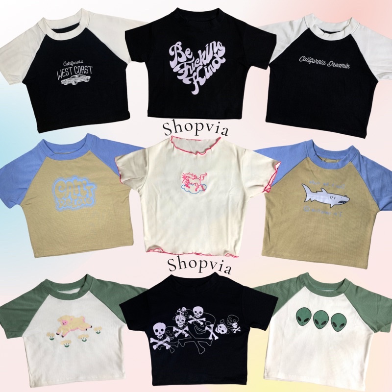 Crop Top Premium Knit Fashionable Chic Style/Californi/Unicorn/Babyshark Crop Tee