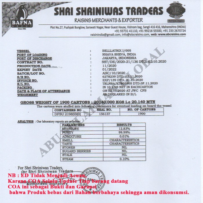 Raisin Black Organic Permium 250 Gram / Kismis Hitam Organik 250g