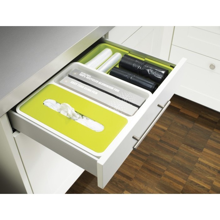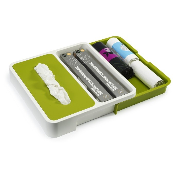 Living Giving - Joseph Joseph Drawerstore - Organiser with Bag Dispenser - White/Green