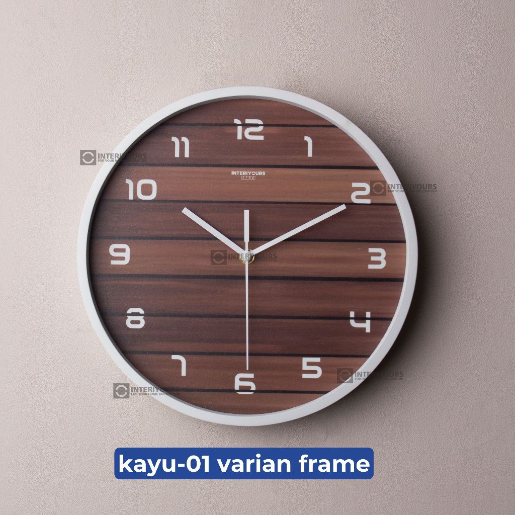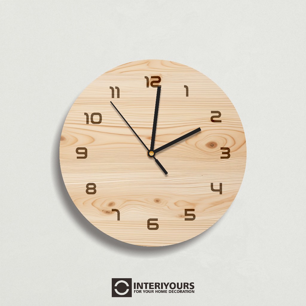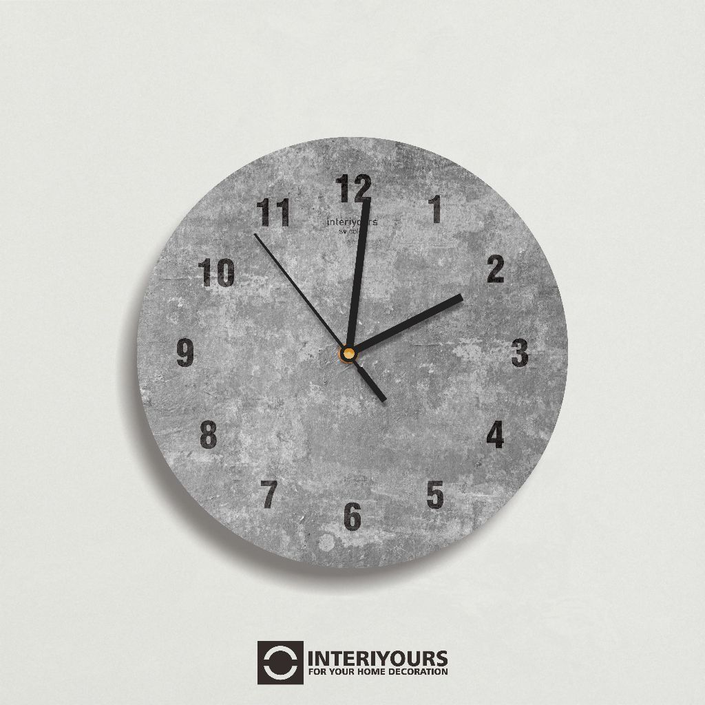 Jam Dinding Estetik Bulat 29cm Tekstur Kayu Semen Mesin Silent Movement Tanpa Suara