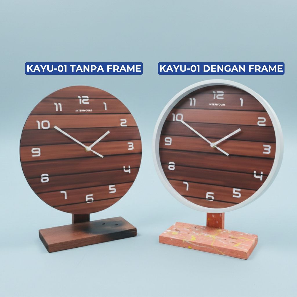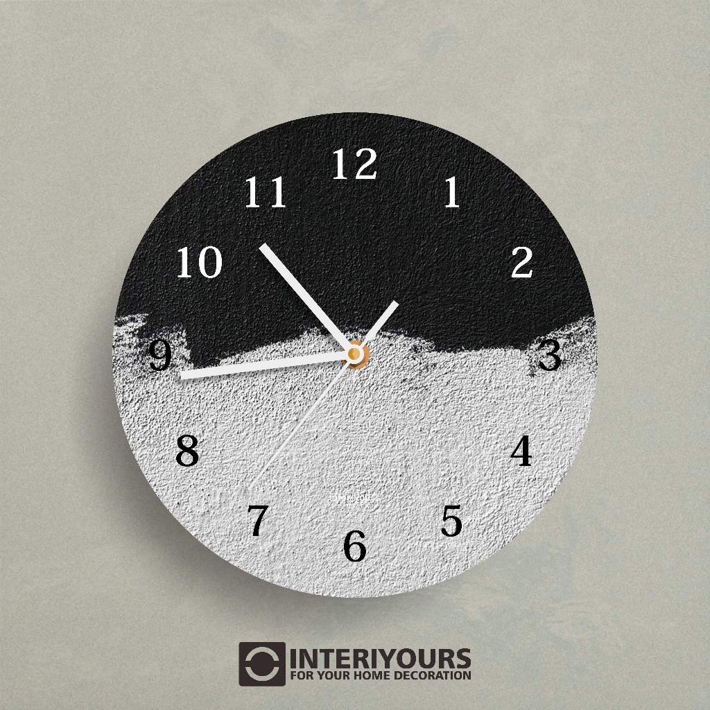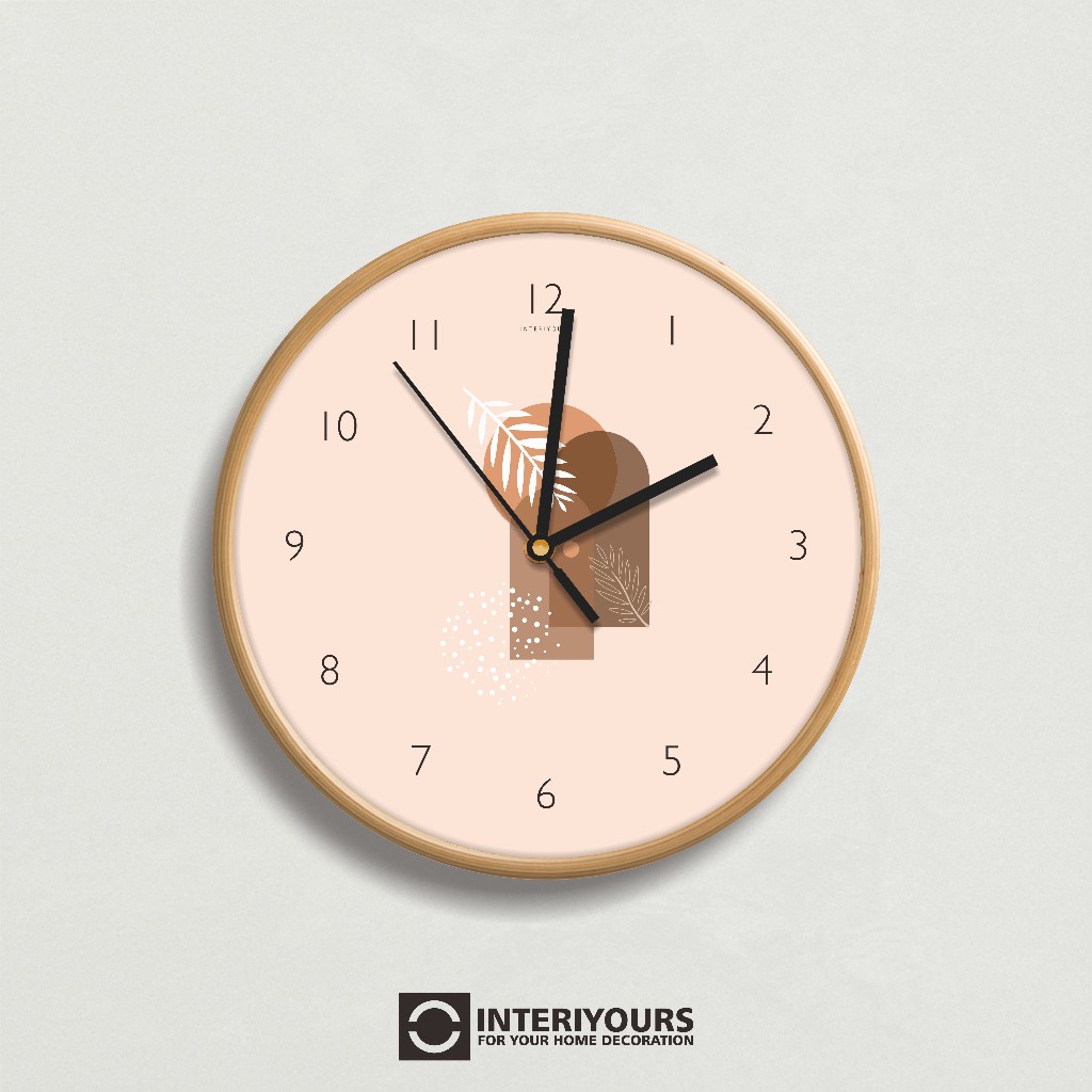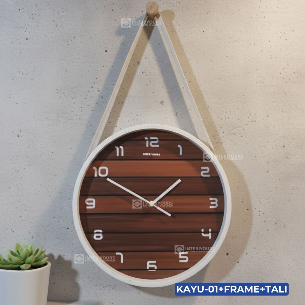 Jam Dinding Estetik Bulat 29cm Tekstur Kayu Semen Mesin Silent Movement Tanpa Suara