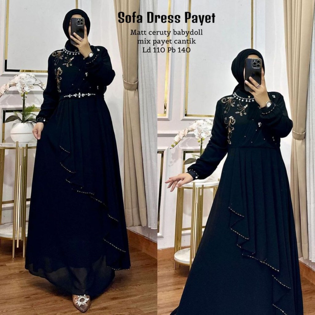 Gamis Hitam Dress Wanita Baju Pesta Dress Muslim Kombinasi Payet