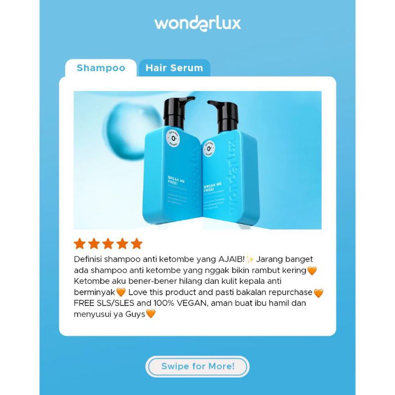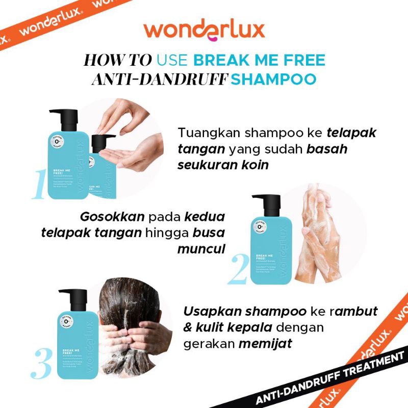 WONDERLUX Wonderlux wonderlux - Hold my strands - Hair Fall Treatment Shampoo - Wonderlux Break me free! - Anti Dandruff shampo - Dermatology tested - healthy smooth thicker hair - Non scalp drying - TASYA FARASYA APPROVED!!