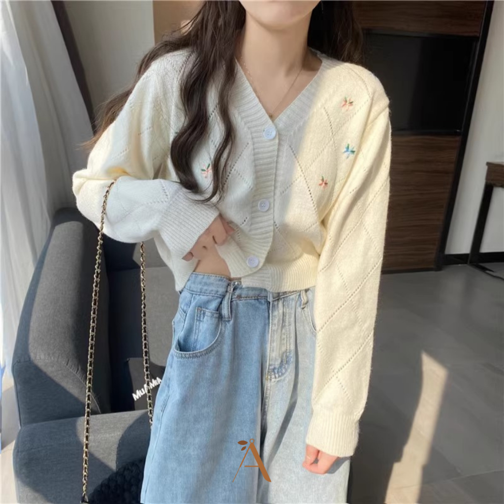 [READY] COUTURADY - AY15 | Zinnia Flora Knit Cardigan Outer Rajut Korea Knit Sweater
