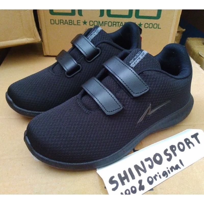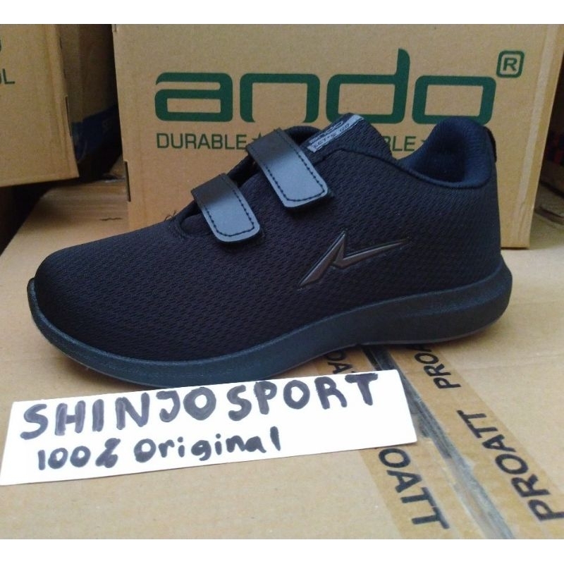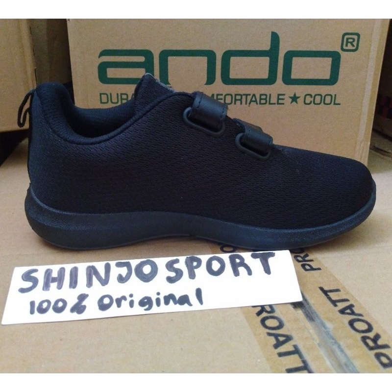 PEKAT HITAM SEPATU SEKOLAH ANDO ORIGINAL ANAK SD SMP PRAMUKA UPACARA VELKRO PEREKAT RINGAN LENTUR