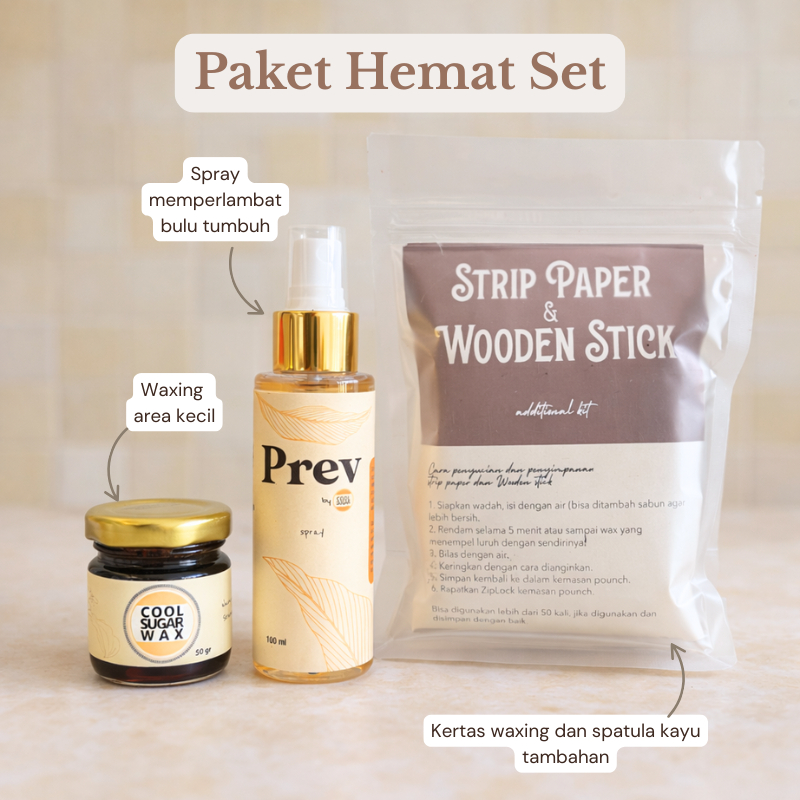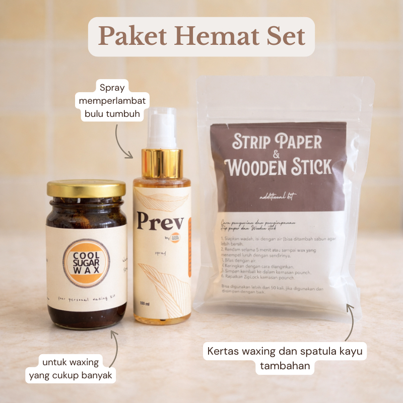 Coolsugar Paket Hemat Set - Coolsugar Wax + Coolsugar Prev + Addkit - Natural Sugar Waxing Kit