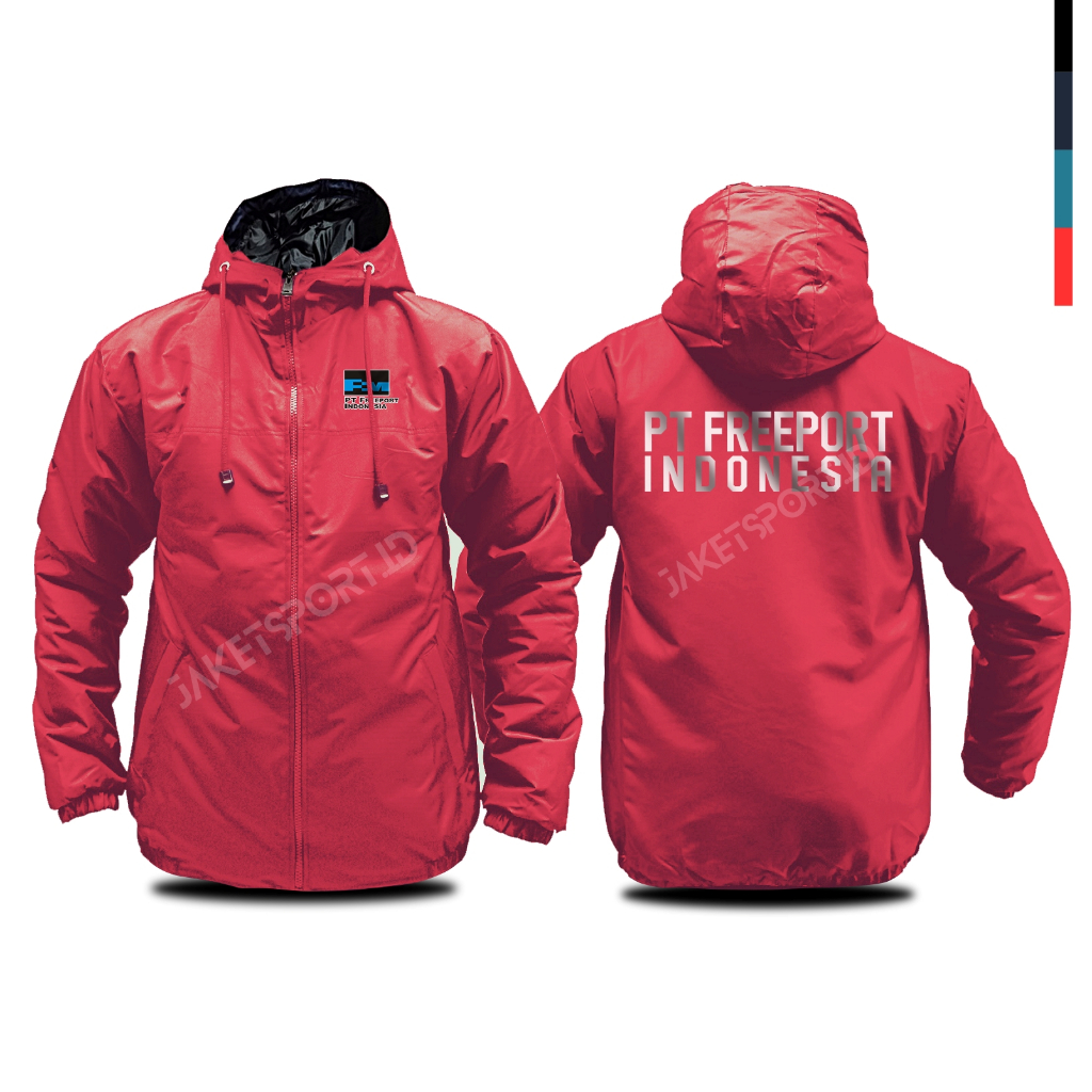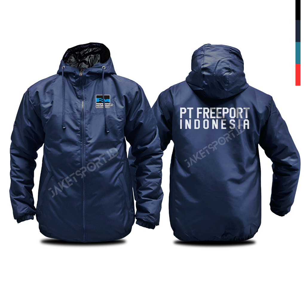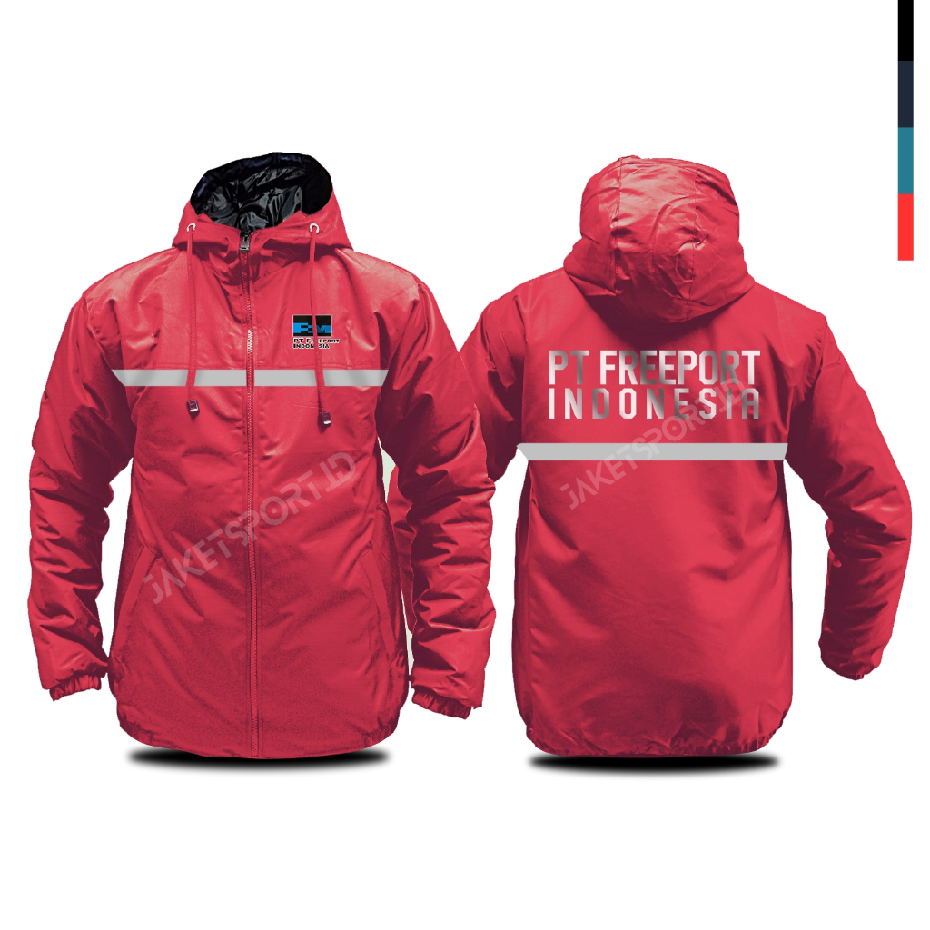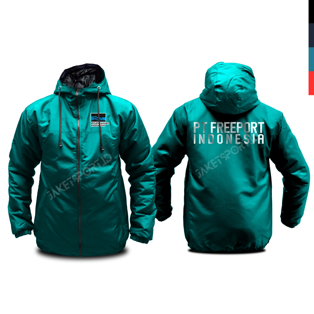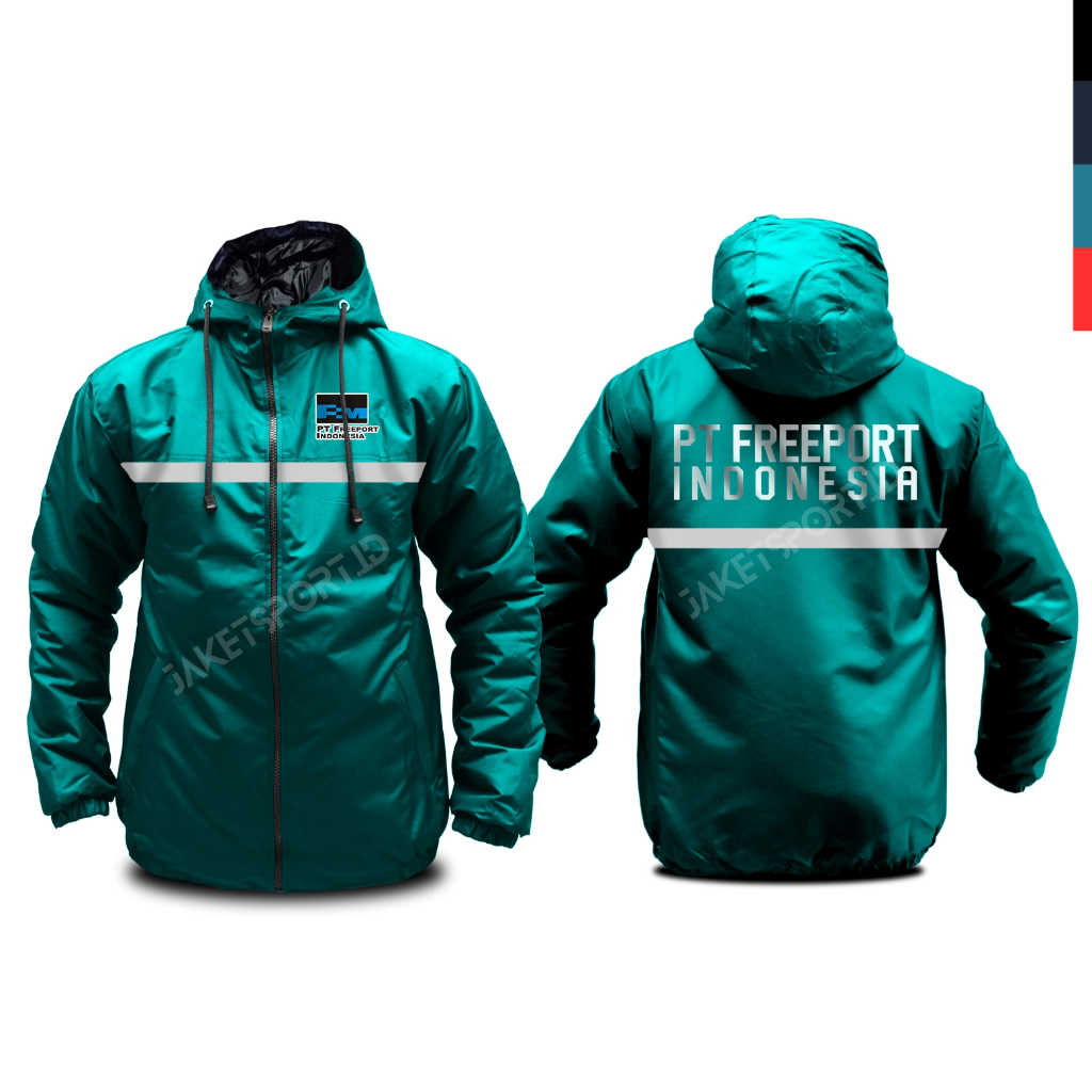 JAKET PT FREEPORT INDONESIA CUSTOM SABLON SCOT LIGHT MENYALA BAHAN PARASUT WINDBREAKERS FREE NAMA