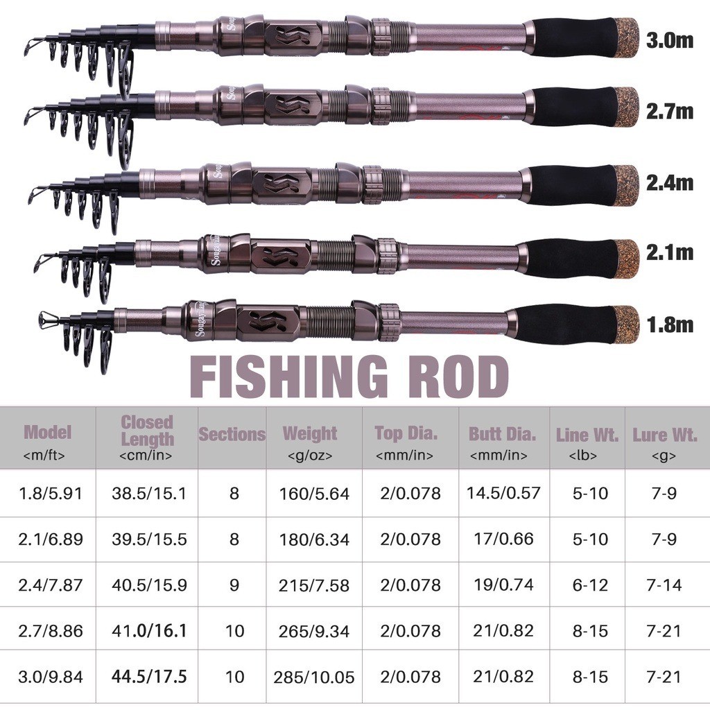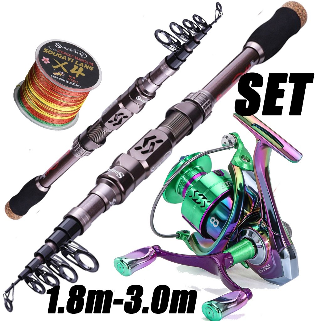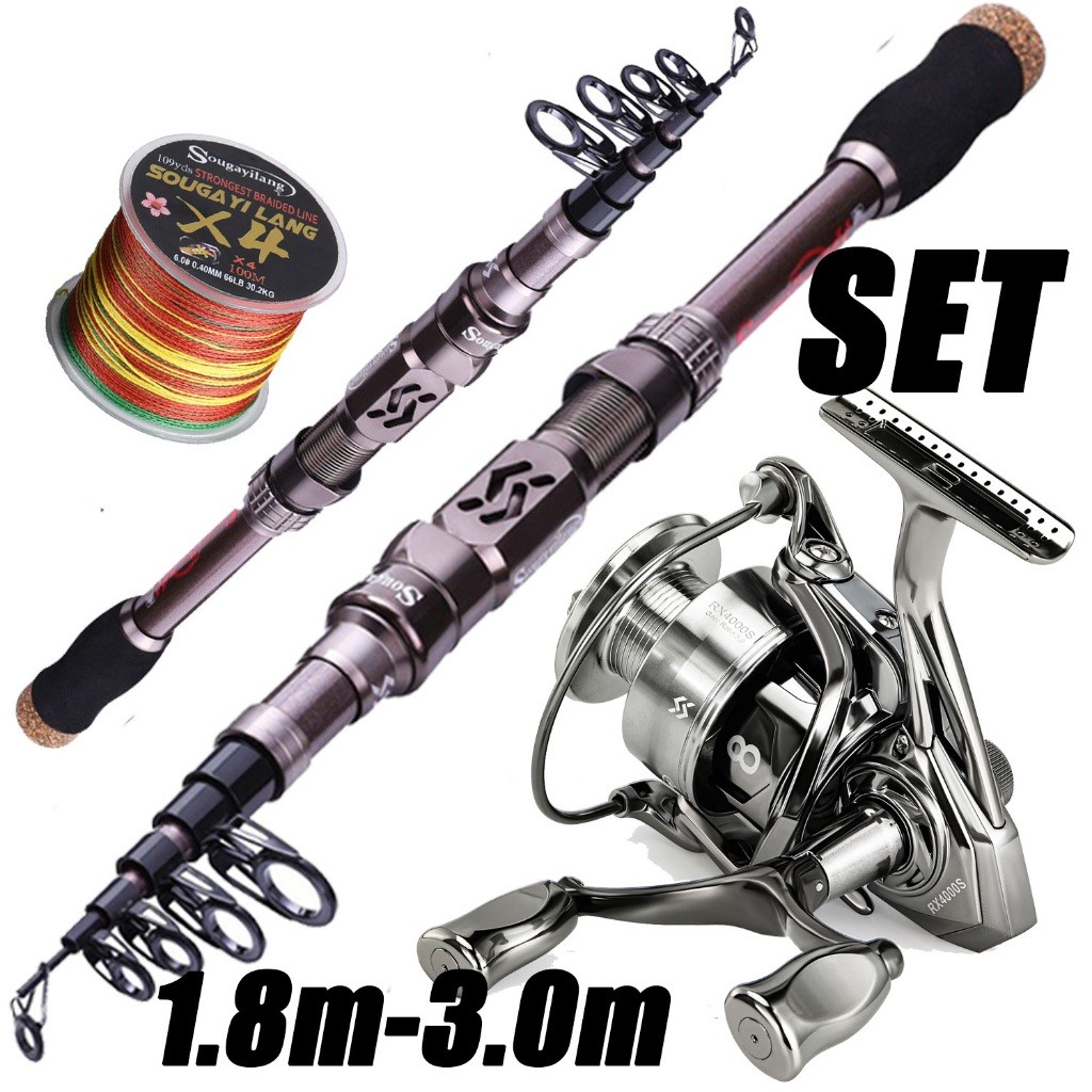Sougayilang 1.8m 2.1m 2.4m 2.7m 3.0m 3.6m Spinning Fishing Rod Fishing Reel Combos Carbon Fiber Travel Portable Telescopic Fishing Pole Spinning Reels for Travel Saltwater Freshwater Fishing
