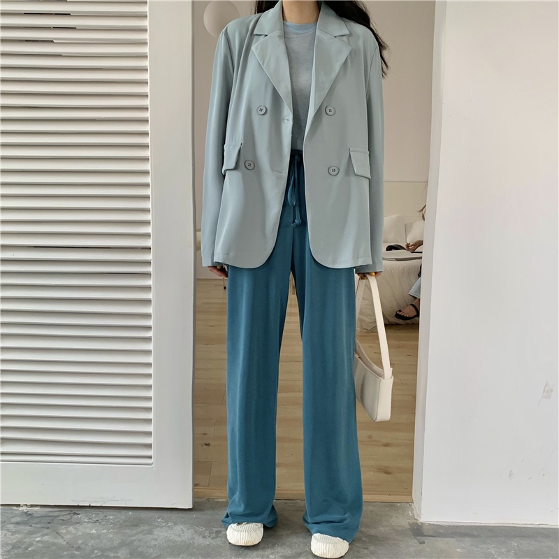 Hitam Pink Biru Korea Blazer Wanita Lengan Panjang Setelan Jas Blazer Women Outer Murah