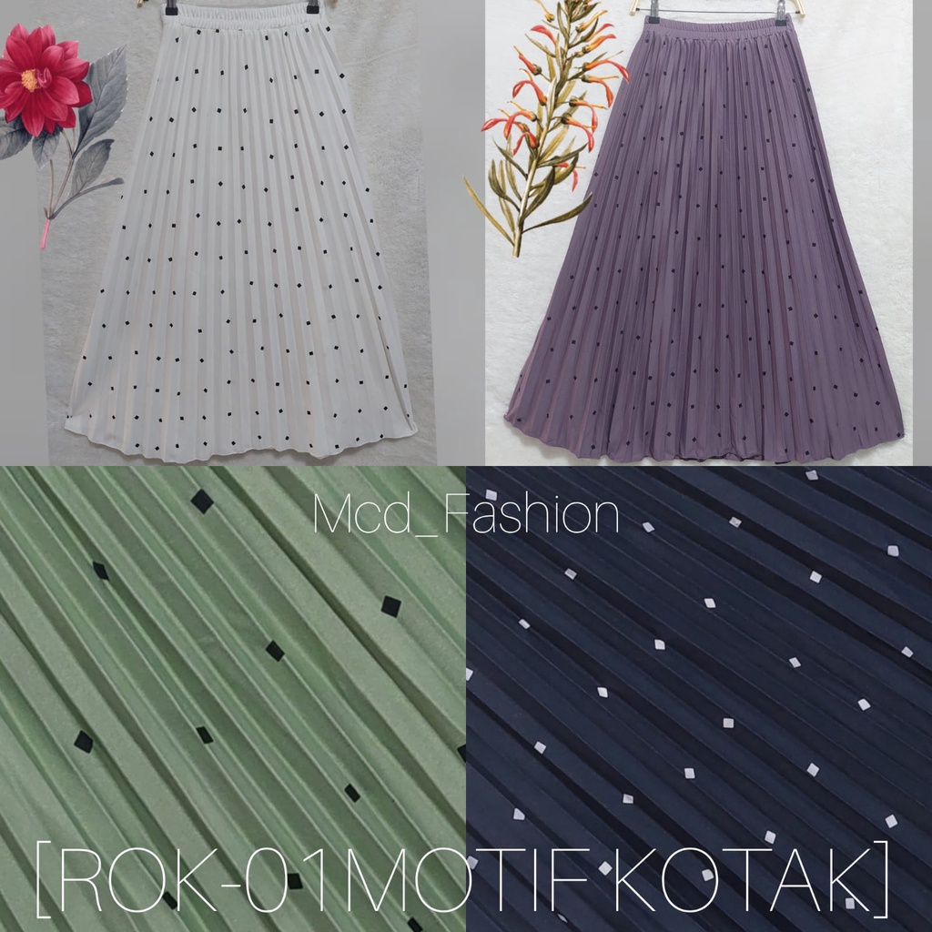 [ D-01 KOTAK ] Rok Plisket Payung / Rok Muslim motif Kotak