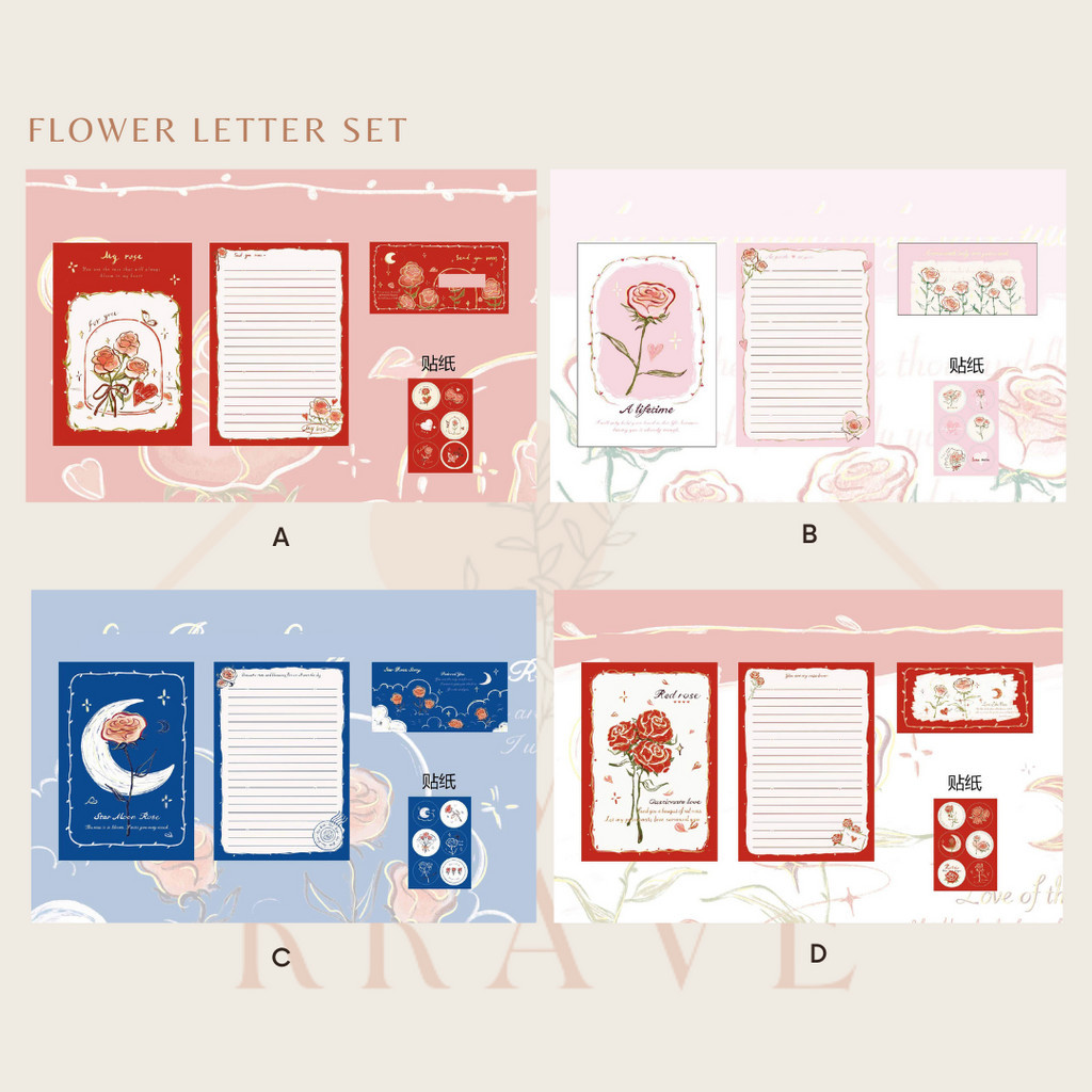 RUMAH KRAVE - Flower Letter Set Kertas Surat Amplop