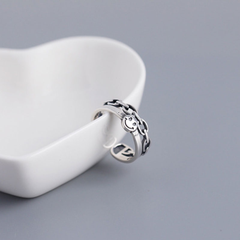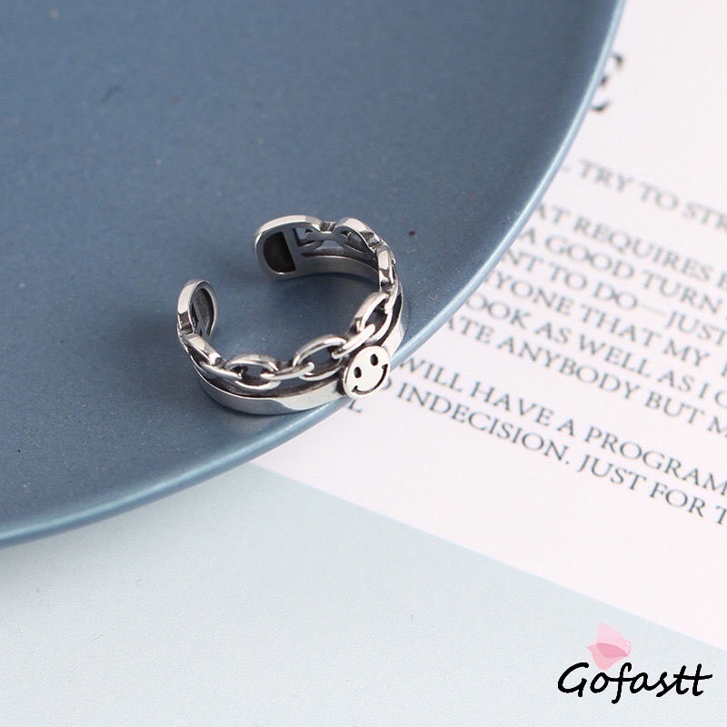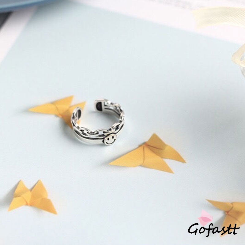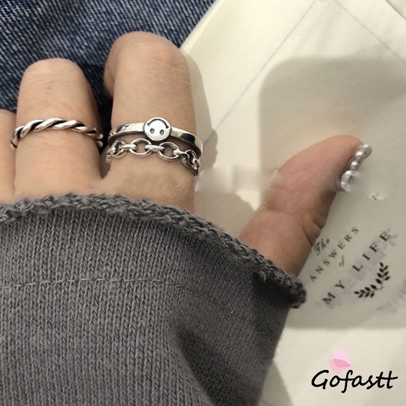 2pcs/set Cincin Rantai Yang Dapat Disesuaikan Modis Desain Wajah Tersenyum Multi-fungsi G