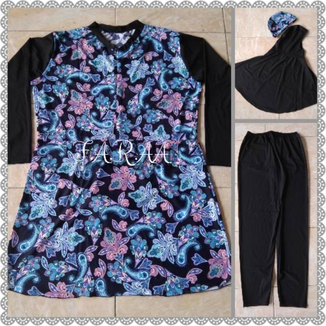 Baju renang muslimah JUMBO BIGSIZE 5XL LD 130 motif daun biru besar