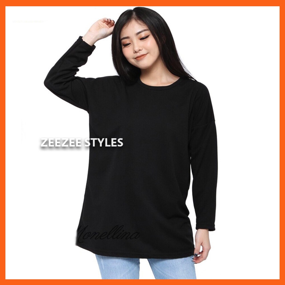 Kaos Polos Distro Pria Wanita Cotton Combed 30s Lengan Panjang Hitam / Baju Polos Cowok Cewek Hitam
