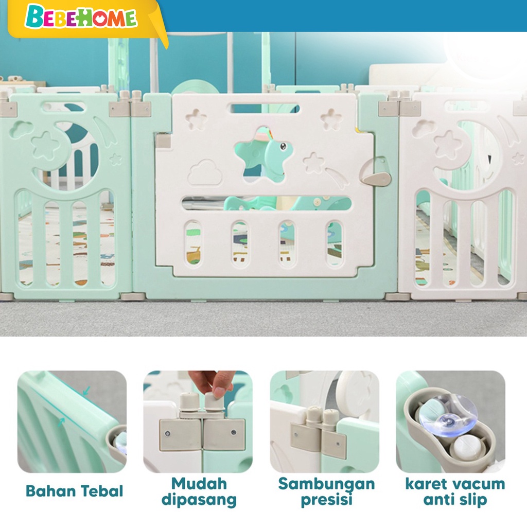 Bebehome Pagar Anak Pagar Bayi Babyfence Import Kokoh Bisa Dilipat Motif Bulan Bintang Play fence