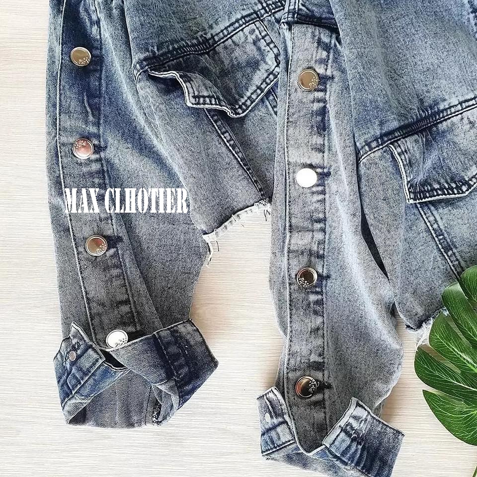 Jaket Crop Jeans Wanita Model Lengan Kancing