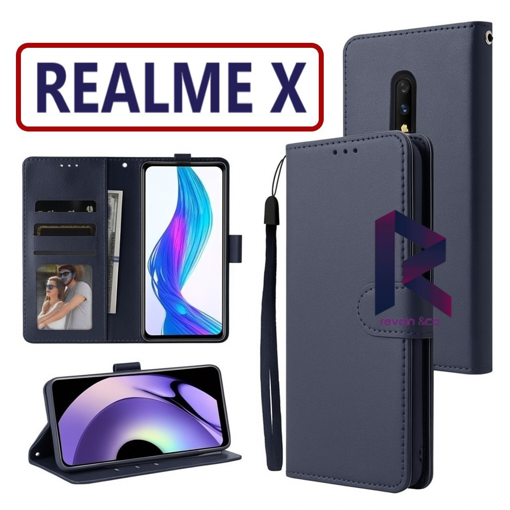 FLIP COVER REALME X CASING DOMPET FLIP WALLET LEATHER KULIT PREMIUM SARUNG BUKA TUTUP FLIP CASE REALME X