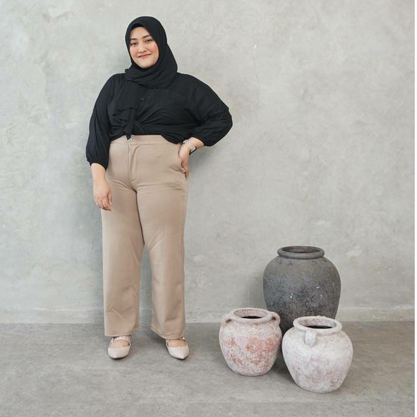 FWR - Kulot Scuba Wanita Highwaist kancing depan 2159 / Kulot Scuba Jumbo premium