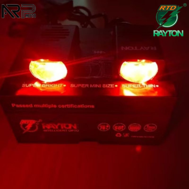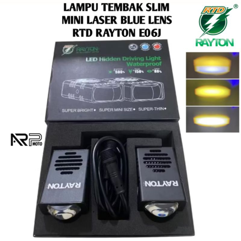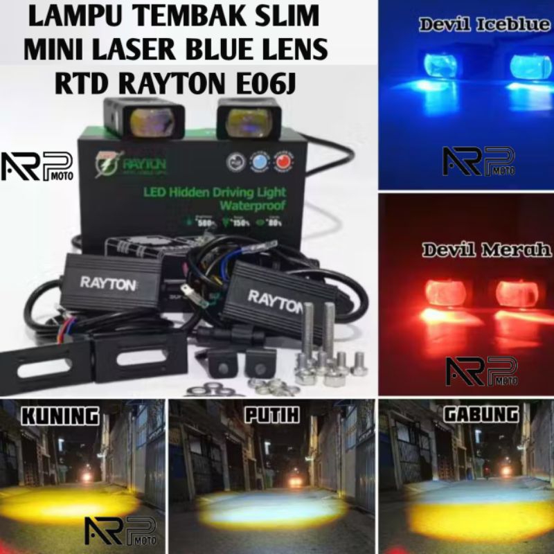 SEPASANG LAMPU TEMBAK MINI LASER D2 SLIM BLUE LENS RAYTON RTD E06J DEVIL MERAH BIRU + KIPAS PENDINGIN SUPER TERANG TEMBUS KABUT UNIVERSAL MOBIL MOTOR