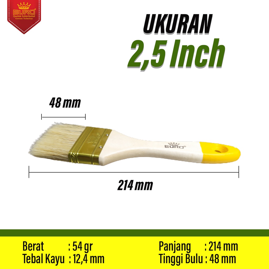 Kuas Cat Kayu tembok Tangan 422 Euro Berkualitas Terlengkap Original 1" 1,5" 2" 2,5" 3" 4" 5"