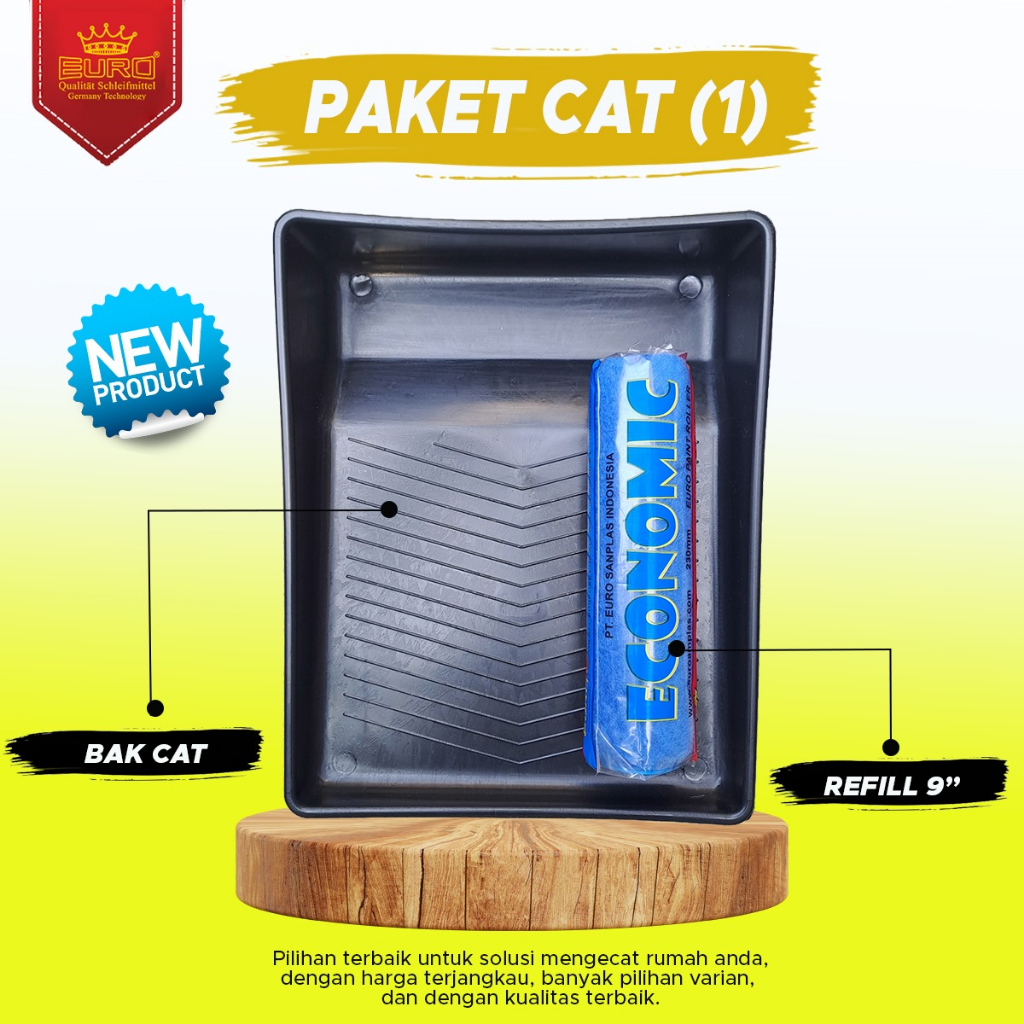 PAKET Bak Cat + Kuas Roll 9 inch + Refill / Bak Cat Tembok / Kuas Roll Tembok / Bak Cat Cair / Bak Cat Dinding / Set Bak Cat dan Kuas Roll / Paket Bak Cat Roll 9 in & 4 inch