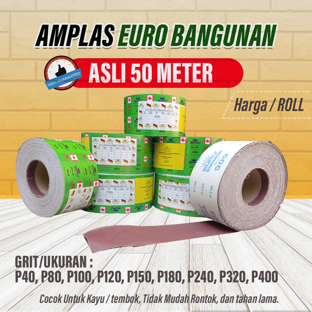 Amplas Roll Gulungan kain Euro Bangunan 50 meter grit terlengkap harga 1 roll