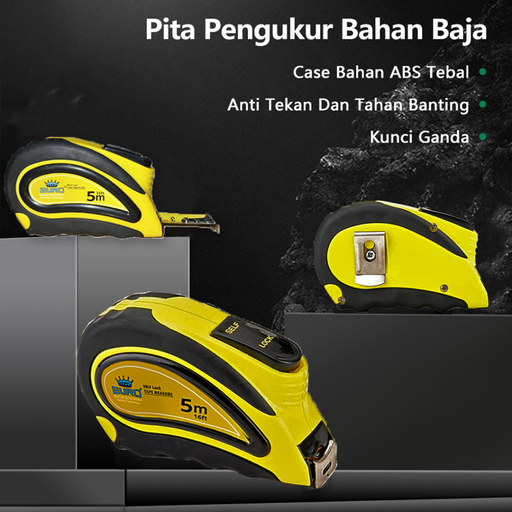 EURO Meteran Karet 5 Meter / Roll Karet / Meter Roll Tukang 5M Kelinci Auto Lock