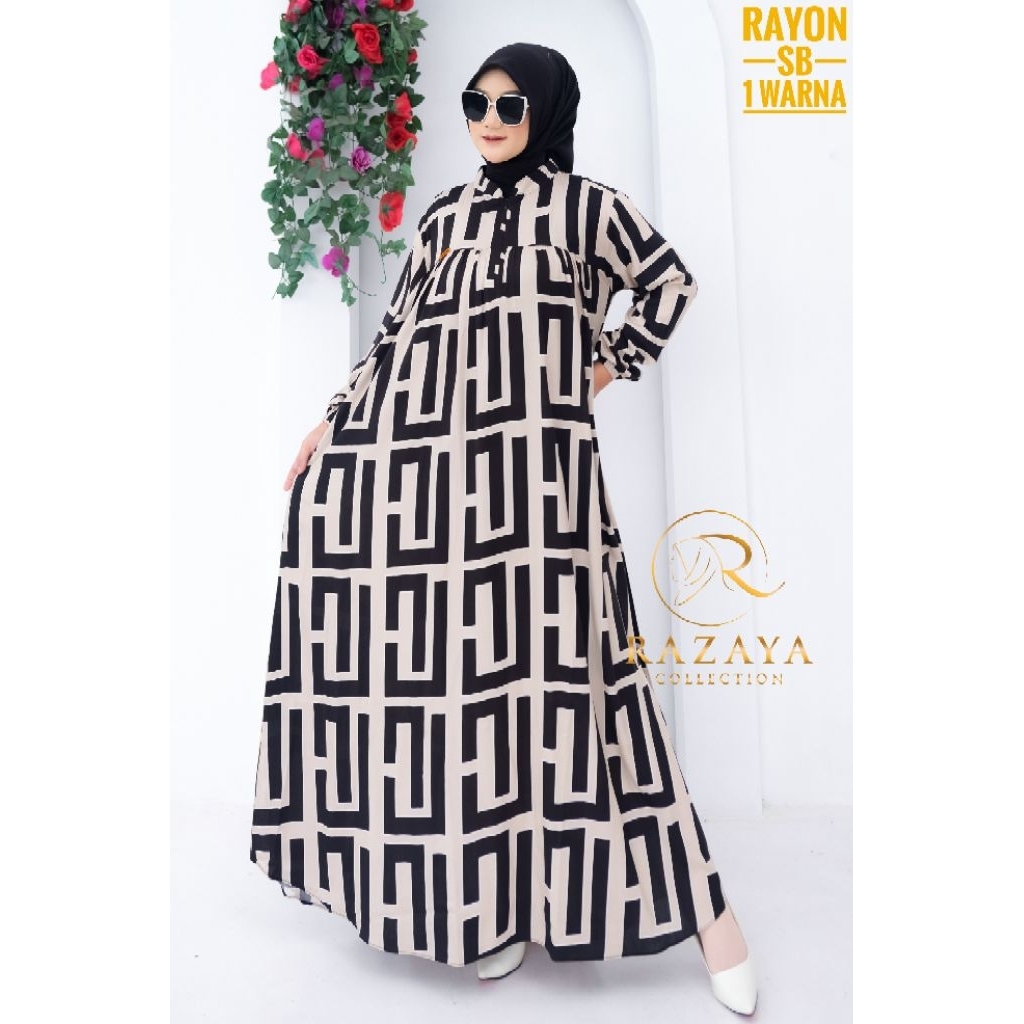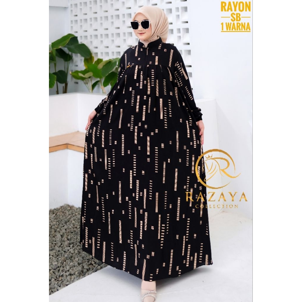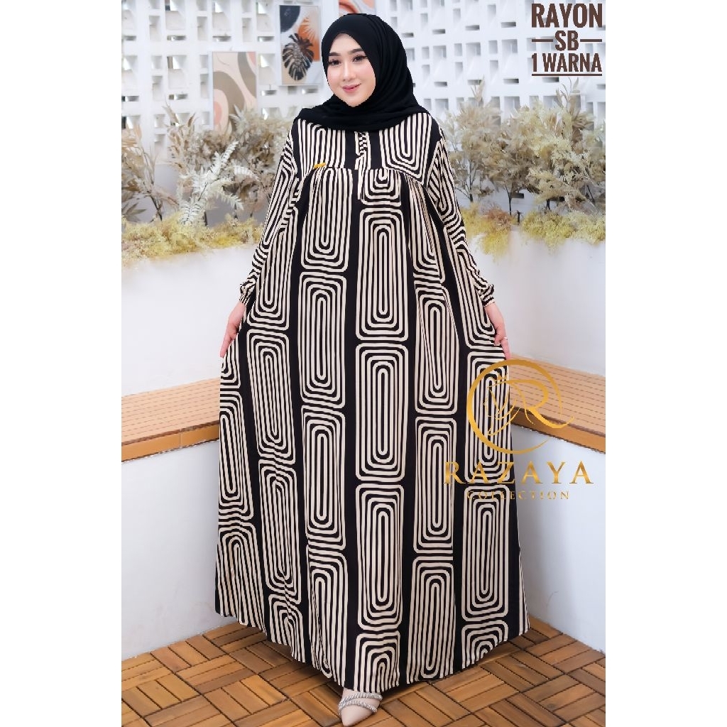 Gamis Rayon Premium Busui Motif Garis Dress Kekinian Terbaru - Razaya