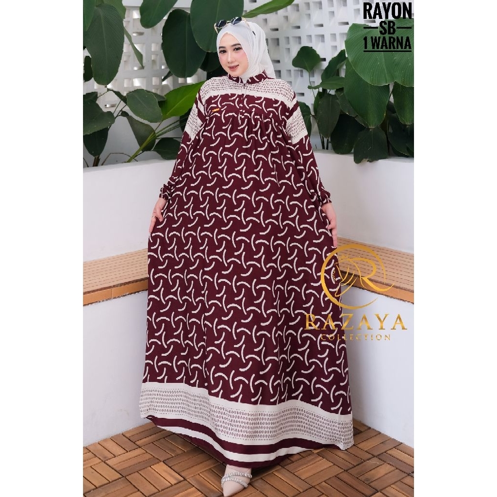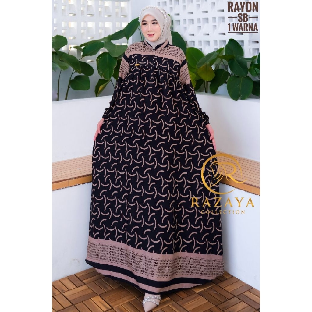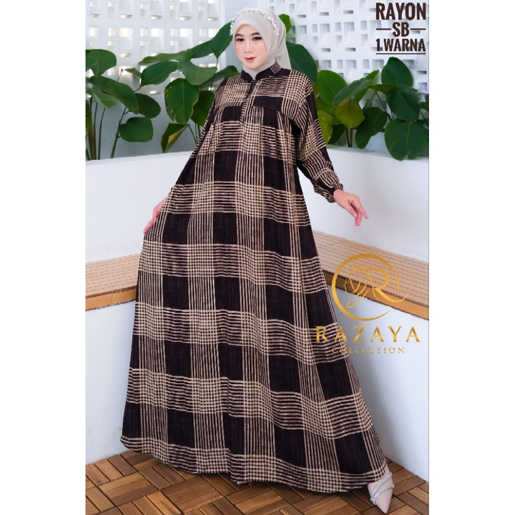 Gamis Rayon Premium Busui Motif Garis Dress Kekinian Terbaru - Razaya
