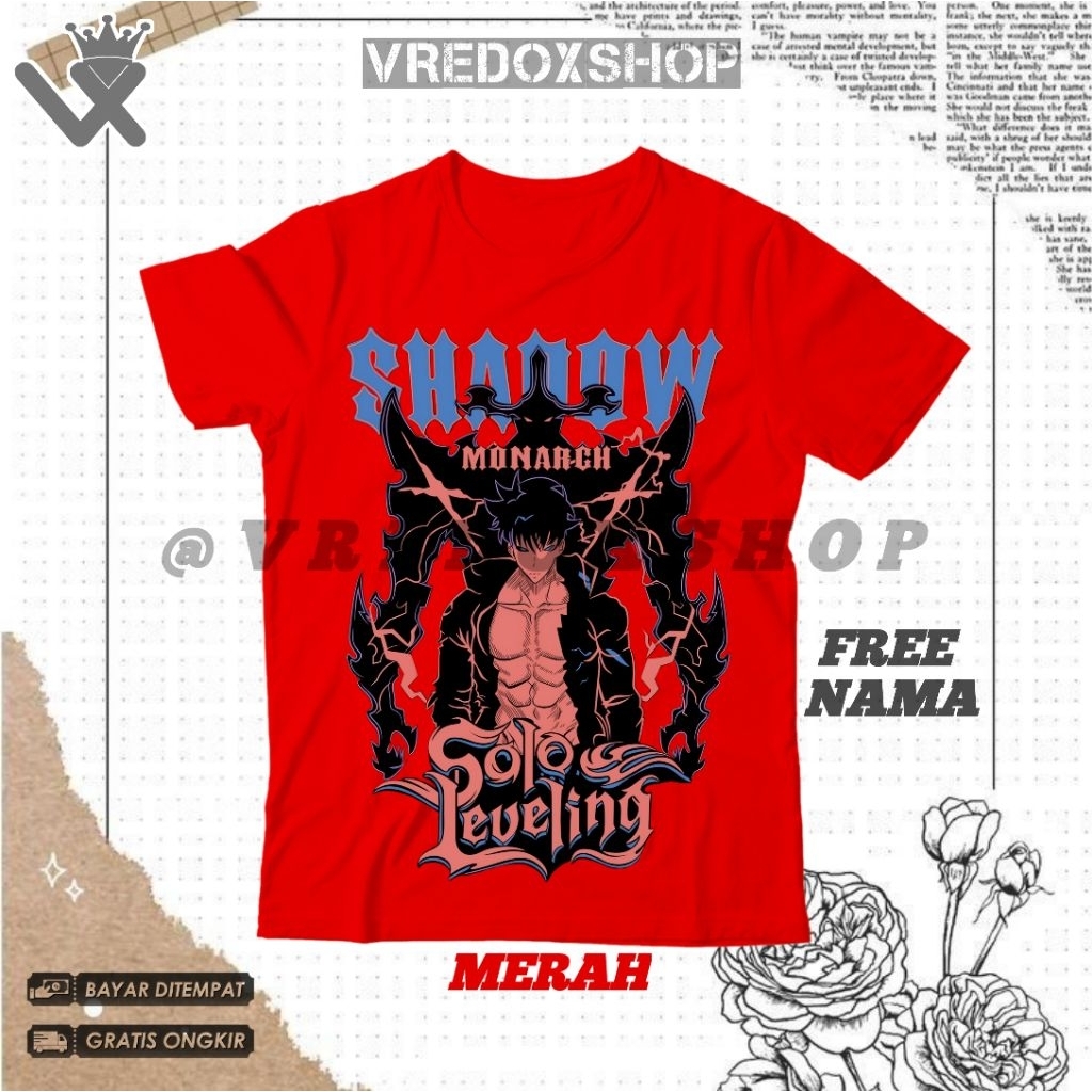 (Free Nama) Kaos Atasan Anak Gambar Sung Jin-Woo / Baju Anime Solo Leveling Sung Jin Woo Shadow Monarch / T-shirt Kids Distro Pakaian Fashion Anak untuk Laki Laki dan Perempuan Usia 3-12 Tahun Bisa COD