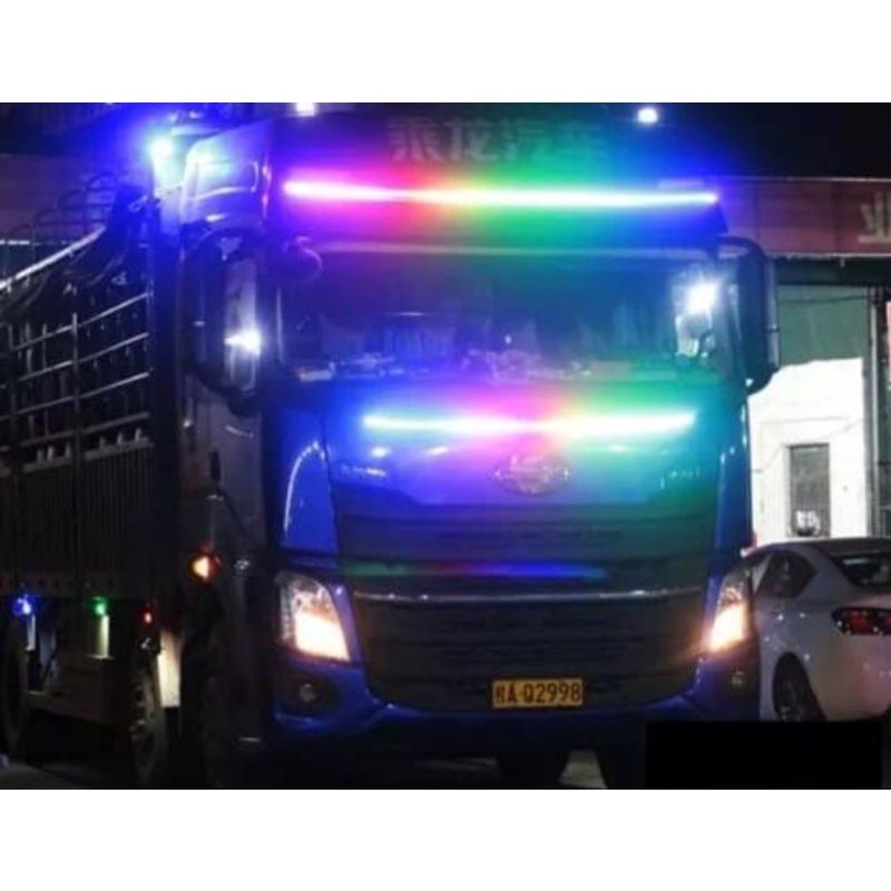 Lampu LED Alis DRL 24 Volt 120 cm 150 cm Truk Bus Canter Fuso Tronton Senja RGB Strip Bagasi Sein Running Sen Rem Mundur 24 V Truck Bis Motor Mobil 5 2 Mode Depan Utama Fleksibel 2 Aki Slim